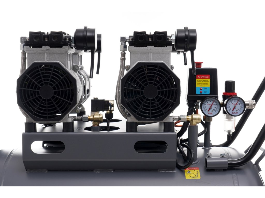 Tichý bezolejový kompresor – profesionálny zdroj čistého vzduchu bez obsahu oleja. Spoľahlivá a tichá pumpa môže byť úspešne umiestnená v kancelárii, ordinácii alebo pri stroji bez zhoršenia nepohodlia spôsobeného hlučnou prevádzkou.