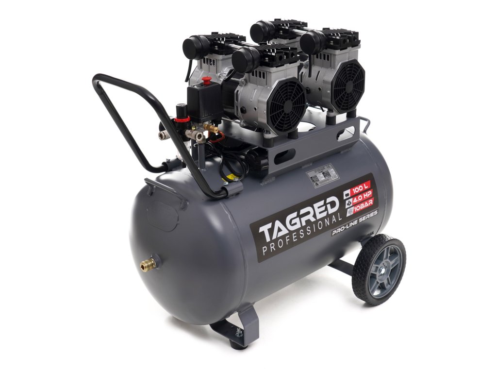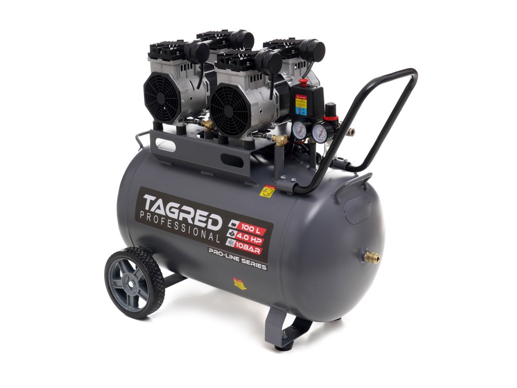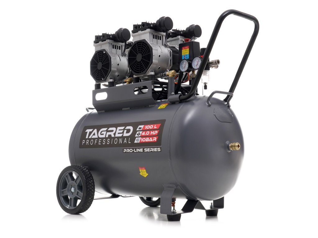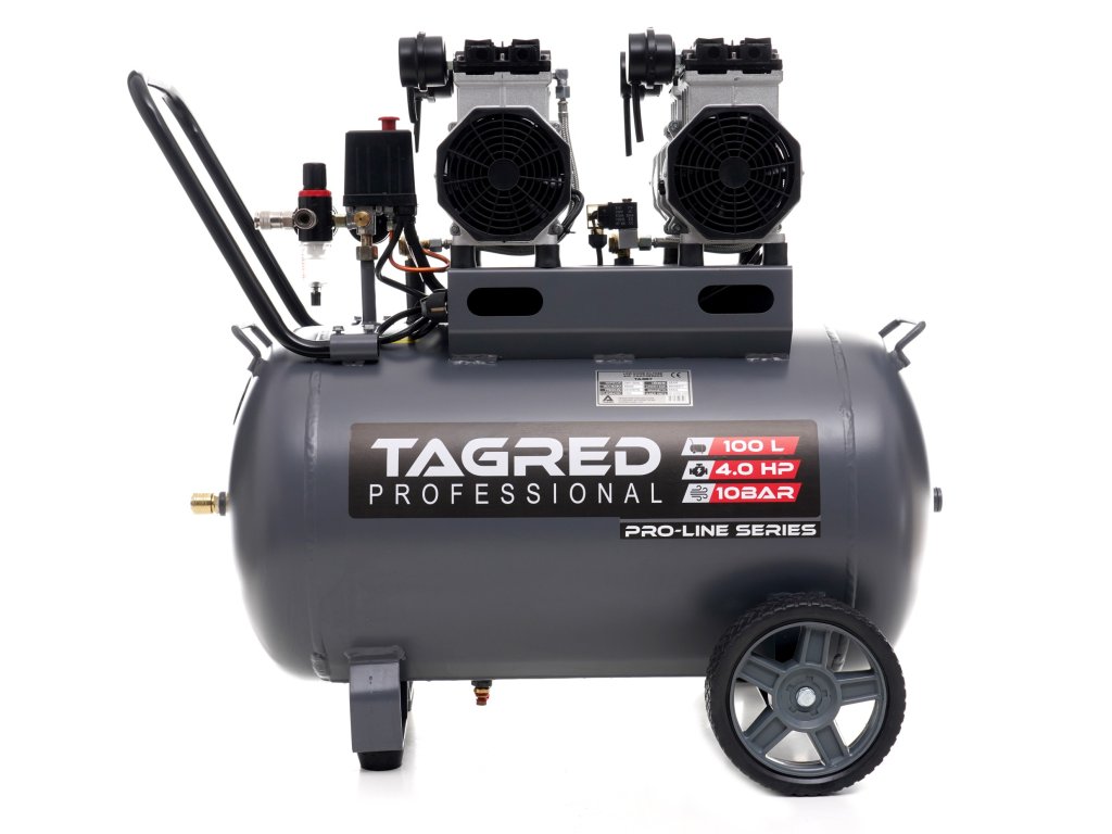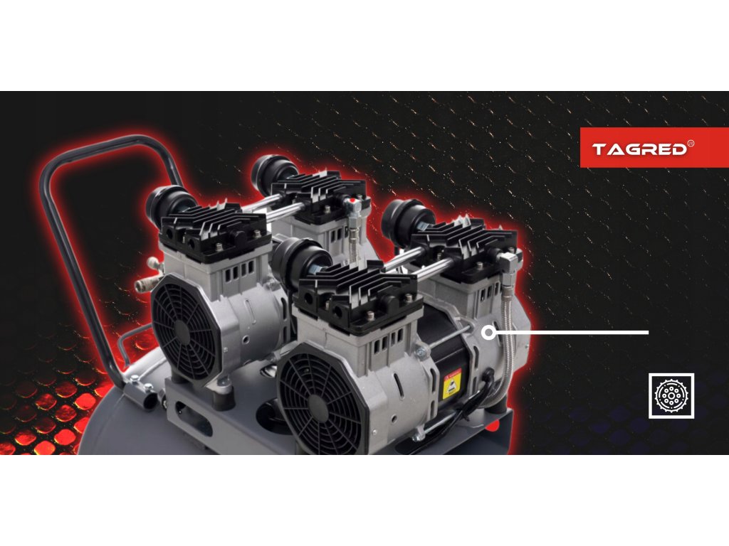 V bezolejovom kompresore značky TAGRED bol použitý funkčný a prakticky bezúdržbový piestovo-membránový agregát. Použité riešenie zabezpečuje veľmi tichú a efektívnu prevádzku vzduchového kompresora , ktorý je možné používať v hospodárskych aj domácich priestoroch.
