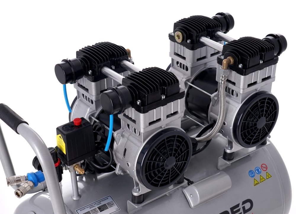 Tento kompresor si nevyžaduje kontrolu hladiny oleja ani údržbu piestov. Štvor-piestny motor je vybavený štyrmi vzduchovými čerpadlami, ktoré sú zložené z ojnice, teflónového krúžku, valca a ventilovej dosky, táto konštrukcia zaručuje prakticky bezúdržbovú prevádzku kompresora. Okrem toho sa konštrukcia vyznačuje vysokou odolnosťou voči mechanickému poškodeniu a veľmi dobrou schopnosťou odvádzať teplo. Zosilnená konštrukcia tlakového vzduchového valca je dodatočne chránená antikoróznym náterom.