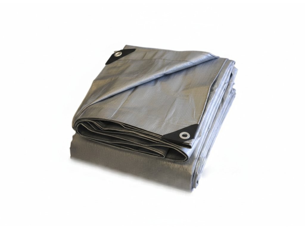 Krycia plachta striebornej farby s rozmerom 6 x 12 m. Vodeodolná a silná, hustota vlákna 200 g/m2.
