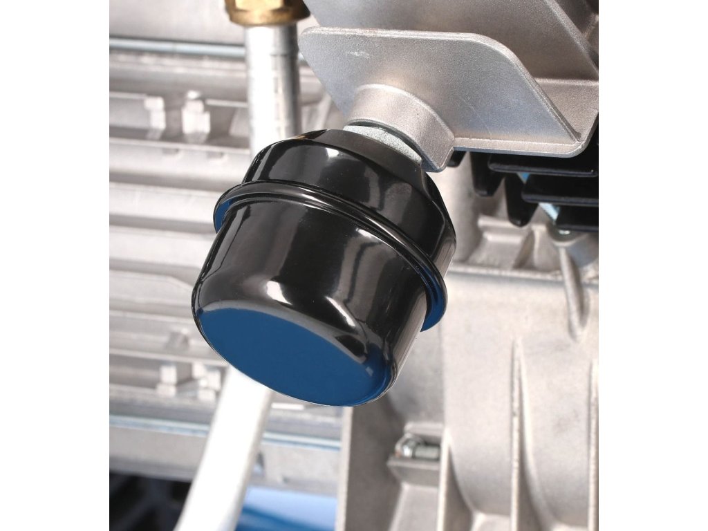 Model BLM 22-410 je vybavený dvojitým zásobníkom s objemom 2 × 11 litrov, čo zabezpečuje stabilný tlak a dlhšie pracovné cykly bez potreby častého dopĺňania vzduchu. Dvojpiestová konštrukcia s priamym pohonom zaručuje optimálne prenášanie výkonu a trvanlivosť zariadenia aj pri intenzívnom prevádzkovaní.