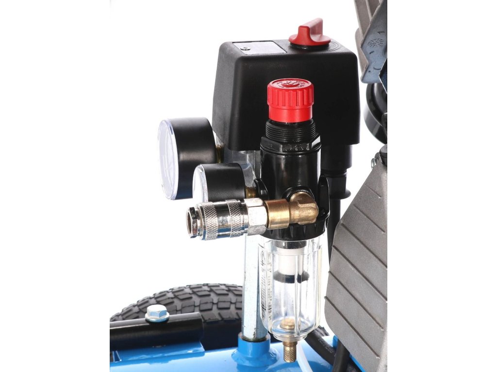 - Mobilita: Veľké kolesá a ergonomický rám uľahčujú prenášanie kompresora na akékoľvek pracovisko.
