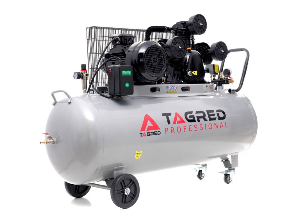 Profesionálny olejový kompresor TAGRED TA311 s obrovským vzdušníkom 300 l, napájaním 400 V a trojpiestovou konštrukciou. Určený pre náročné dielne, servisy a priemyselné využitie.