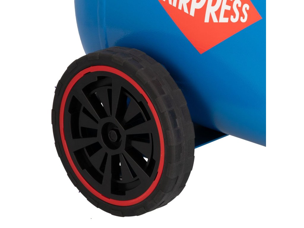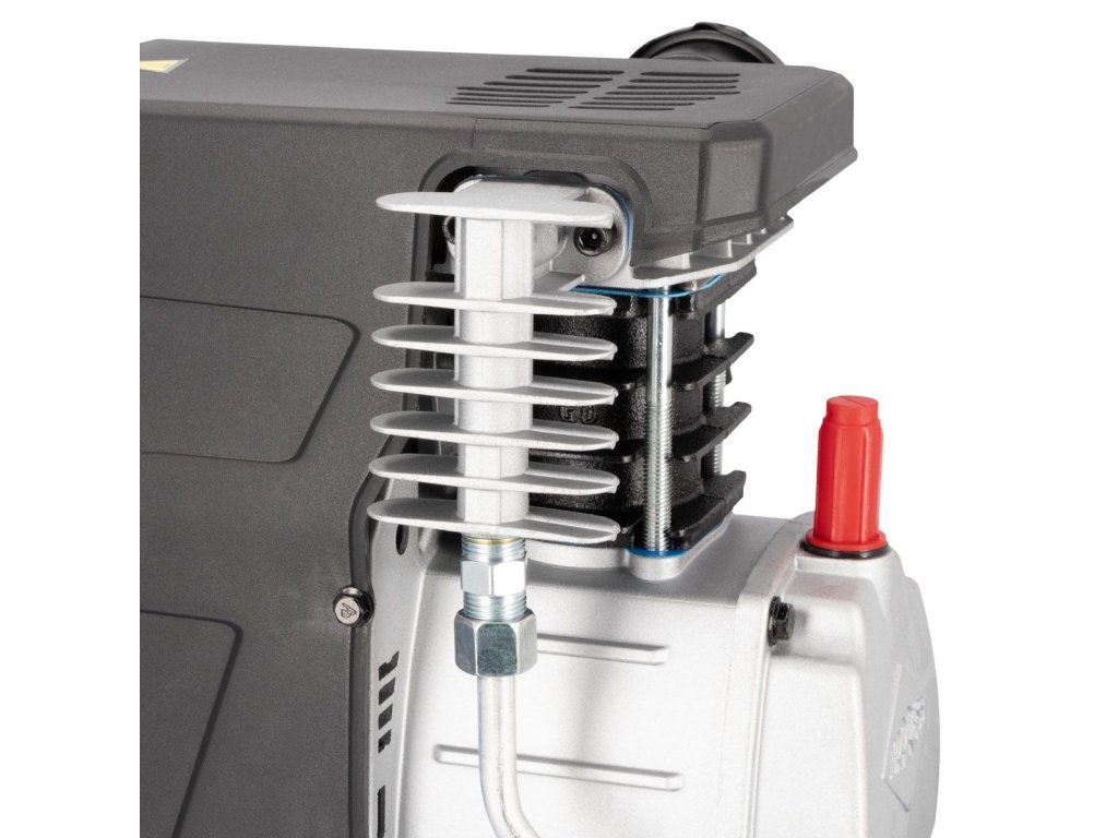 - Mobilita: Kompresor je vybavený ergonomickým držadlom a pevným transportným kolesom, čo uľahčuje premiestňovanie zariadenia, aj na nerovných povrchoch.