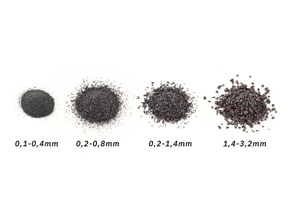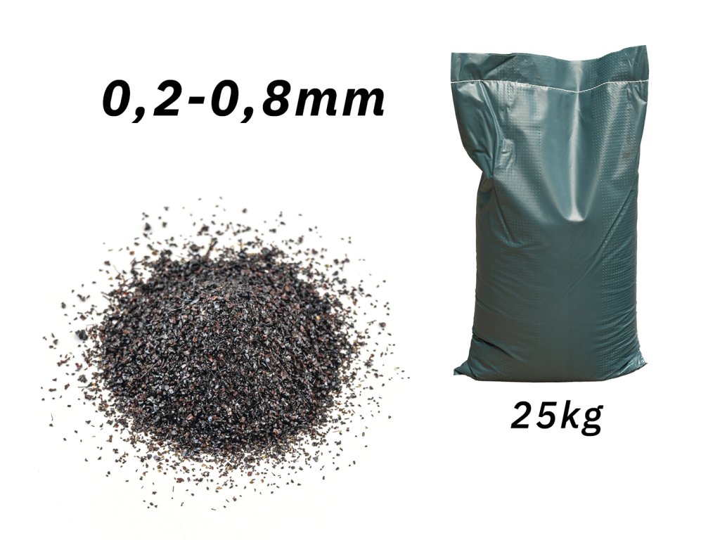 Abrazívum - medená drť s priemerom: 0,2-0,8 mm v praktickom 25kg balení.