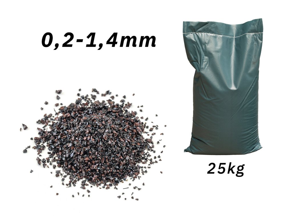 Abrazívum - medená drť s priemerom: 0,2 - 1,4 mm v praktickom 25kg balení.