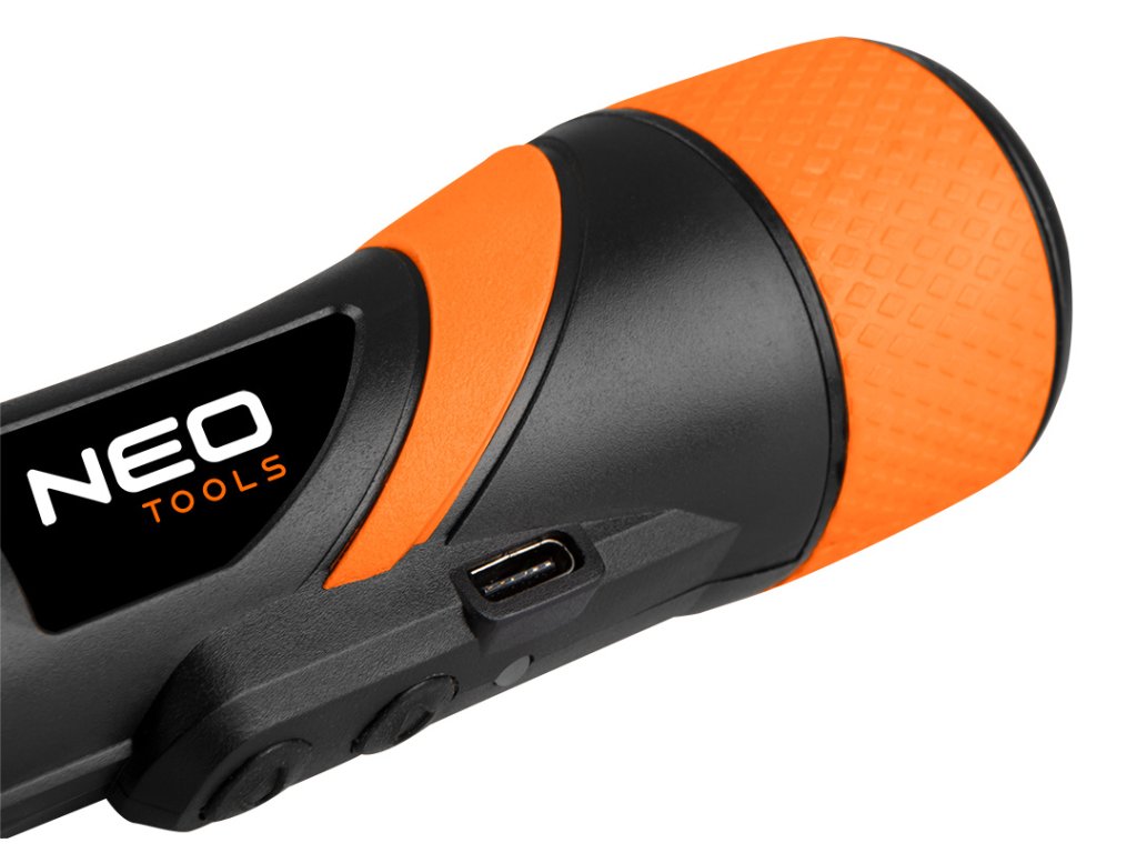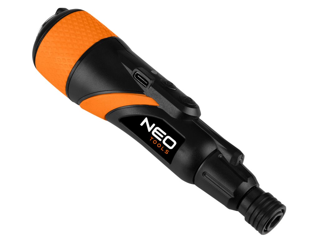 Multifunkčný akumulátorový skrutkovač NEO s konektorom micro-USB so sadou skrutkovacích bitov je určený na mnohé práce v závislosti od použitia príslušnej zásuvky. Súprava sa dodáva v plastovej škatuli na jednoduché skladovanie.