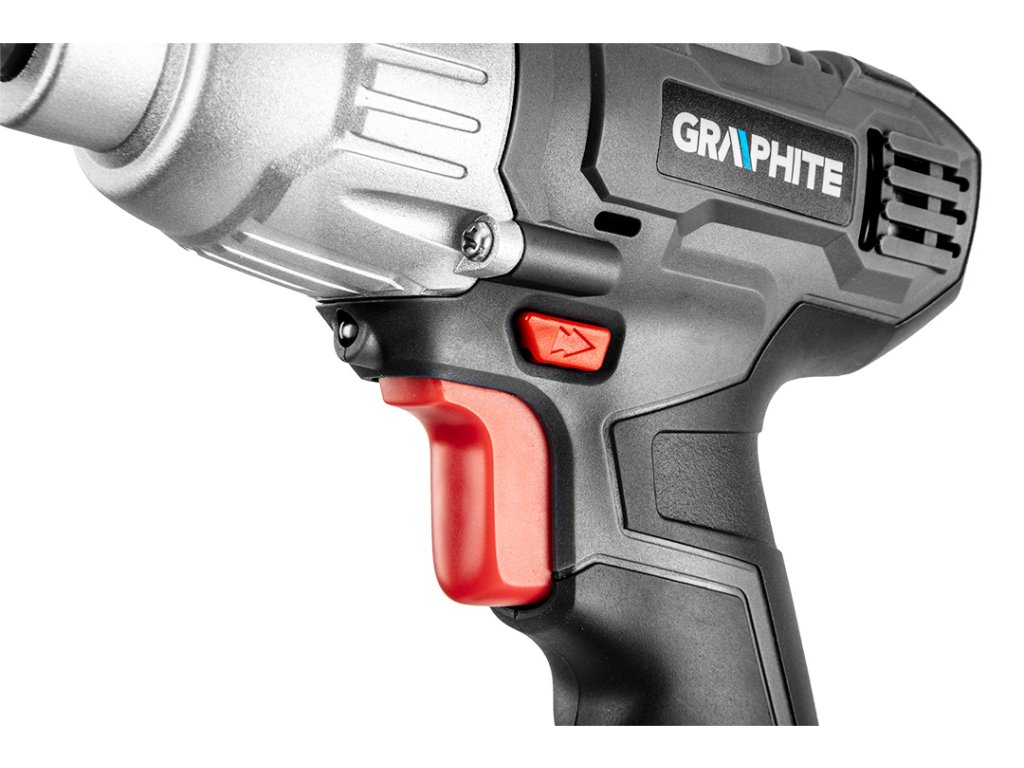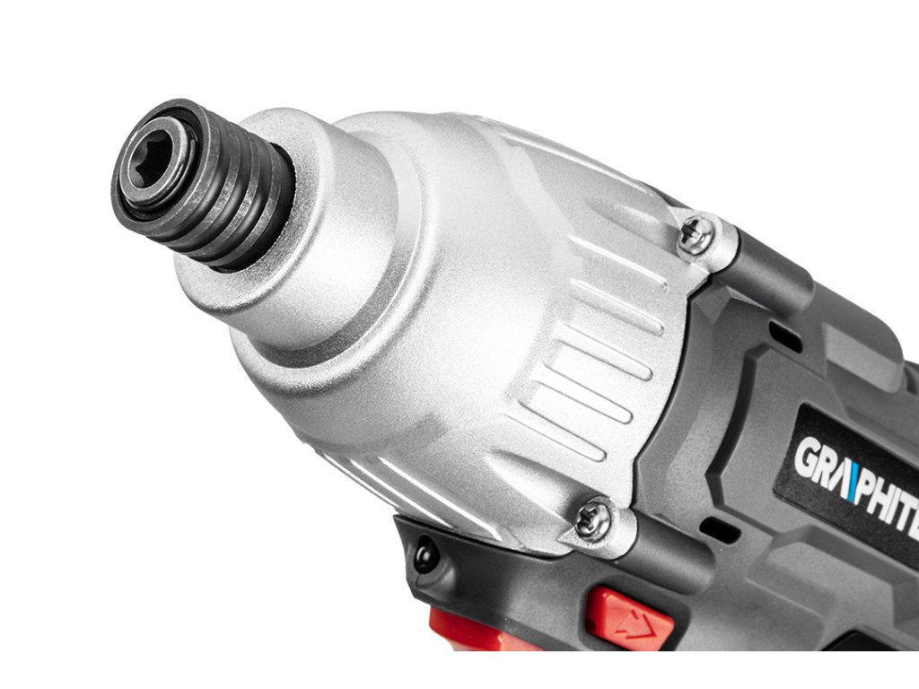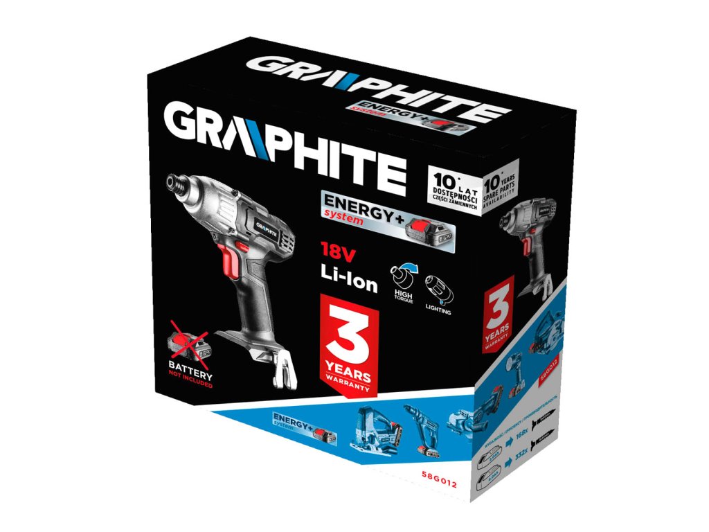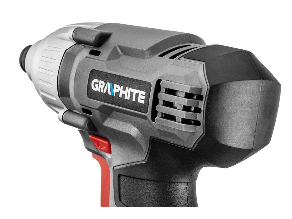 Uťahovač GRAPHITE, spolupracuje s akumulátormi 18 V Li-Ion GRAPHITE Energy+. Zariadenie je určené na zaskrutkovávanie a uvoľňovanie skrutiek v dreve, kove, plastoch. Umožňuje prácu pri vysokých rýchlostiach (do 2200 ot./min) a zaručuje vysoký krútiaci moment (180 Nm). Krútiaci moment sa generuje ako okamžitý obvodový príklep, čo znamená, že pôsobenie zariadenia na ruky operátora počas skrutkovania je malé. Skľučovadlo na náradie 6,35 mm (1/4") je prispôsobené na prácu s najpopulárnejším typom skrutkovacích nástavcov/bitov. Zariadenie je vybavené elektrickou brzdou motora, ktorá umožňuje rýchle zastavovanie vretena a LED diódou, osvetľujúcou miesto práce. Vďaka ergonomickému tvaru rukoväte a optimalizovanej celkovej dĺžke uťahováka je možná efektívna práca za každých podmienok.