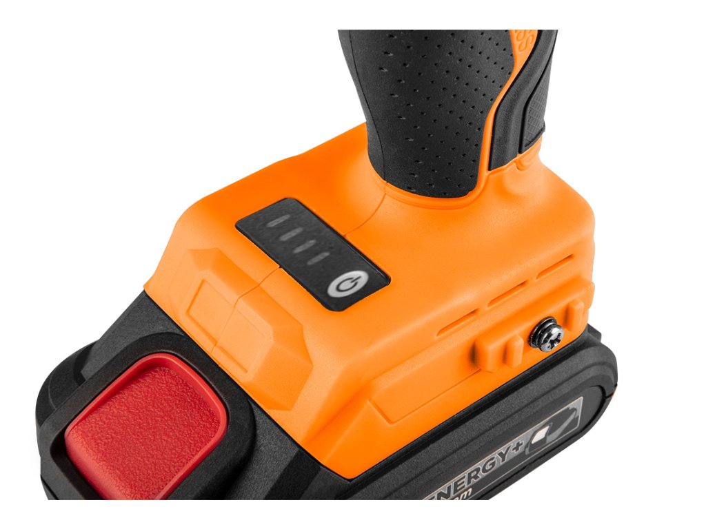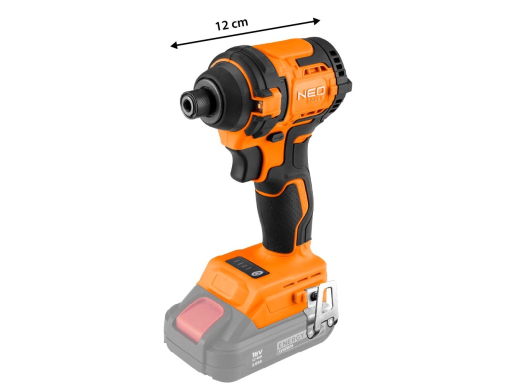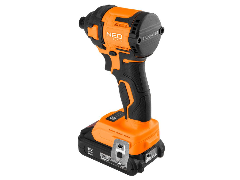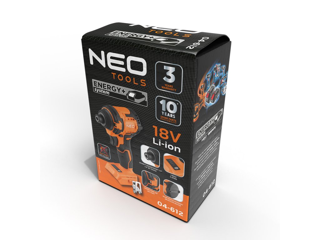 Kompaktný 1/4'' bezkartáčový skrutkovač Energy+ 04-612 s 300 Nm od spoločnosti NEO TOOLS je zariadenie, ktoré funguje na základe akumulátorového systému Energy+. Je vybavený bezkartáčovým maximálnym krútiacim momentom 300 Nm a ?" 6,35 mm držiakom. Disponuje štyrmi prevodovými stupňami a širokým rozsahom otáčok (0-1500/0-2500/0-3200/0-3600 ot./min.), krútiacim momentom na jeden stupeň 45/120/210/270 Nm, max. 300 Nm a frekvenciou úderov (1 800 / 3 200 / 4 000 / 4 500 BPM). Kompaktný skrutkovač NEO TOOLS má aj LED osvetlenie a praktické upevnenie na opasok. Osvedčí sa v mnohých situáciách a na ťažko prístupných miestach.