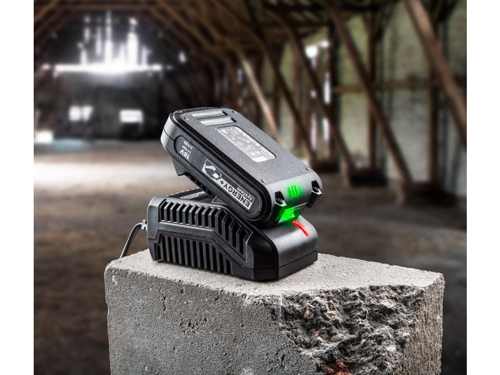 Nabíjačka akumulátorov Graphite Energy + 18V Li-Ion. Maximálny nabíjací prúd 2,3 A. LED dióda informuje o pripojenom napätí, prebiehajúcom nabíjaní alebo ukončením nabíjania. Nabíjačka je vybavená systémom kontroly napätia a teploty pre úplnú ochranu batérie a používateľa. Flexibilný a odolný kábel je dlhý 2 metre a určený na nabíjanie v interiéri aj exteriéri.