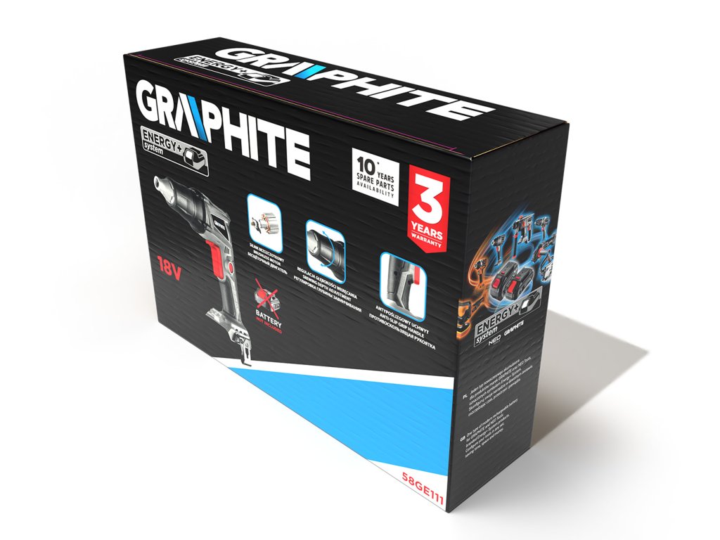 Akumulátorový bezkartáčový skrutkovač Energy+ 18 V 58GE111 od spoločnosti GRAPHITE je funkčný akumulátorový skrutkovač Energy+ s bezkartáčovým motorom. Dodáva sa s batériou s odporúčanou kapacitou 4 Ah, pričom čas prevádzky batérie s kapacitou 2 Ah je približne 43 minút. Skrutkovač dosahuje 4400 otáčok za minútu a maximálny krútiaci moment 7 Nm. Je vybavená skľučovadlom HEX ?" a nastavením hĺbky skrutkovania, čo ovplyvňuje komfort pri práci. Nástroj má funkciu osvetlenia a spínač nepretržitej prevádzky. Praktická spona na opasok vám umožní mať skrutkovač vždy pri sebe. Nástroj GRAPHITE je určený na sadrokartónové, renovačné a stavebné práce.