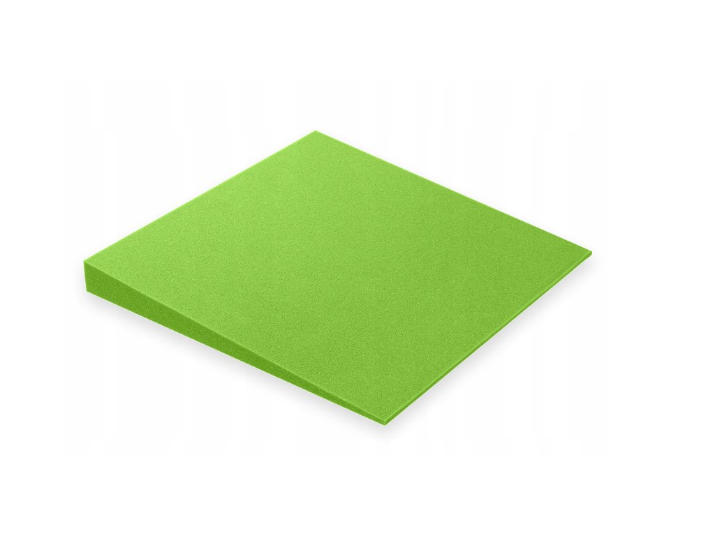Skosený 3D akustický panel 50×50×5 cm, svetlozelený; znižuje echo a dozvuk, jednoduchá montáž, stabilná PU pena.
