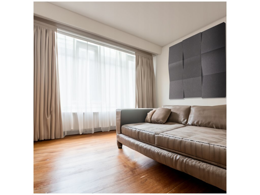 Panely ukladaj v pravidelných radoch alebo vzoroch (šachovnica/pruhy). Pre rýchly efekt začni na prvých odrazoch – bočné steny v úrovni uší, priestor medzi posluchovým miestom a zdrojom zvuku, prípadne strop nad stolom. Lep na čistý, suchý a pevný podklad (farba, sadrokartón, betón, OSB).