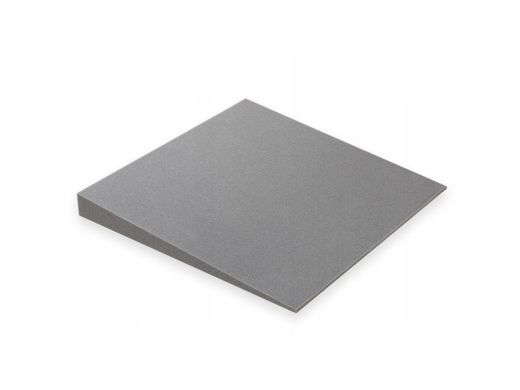 Skosený 3D akustický panel 50×50×5 cm, tmavo sivý; znižuje echo a dozvuk, jednoduchá montáž, stabilná PU pena.