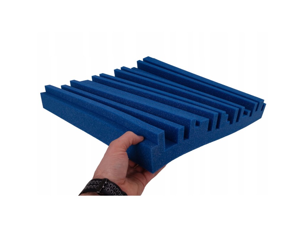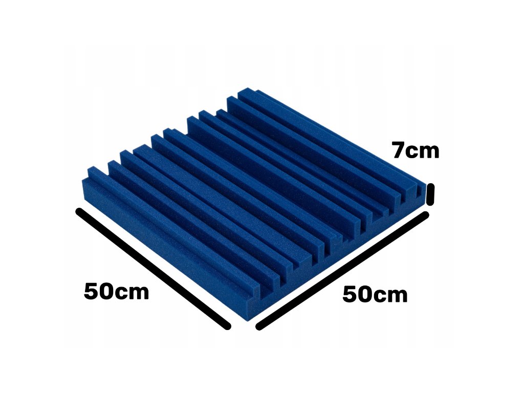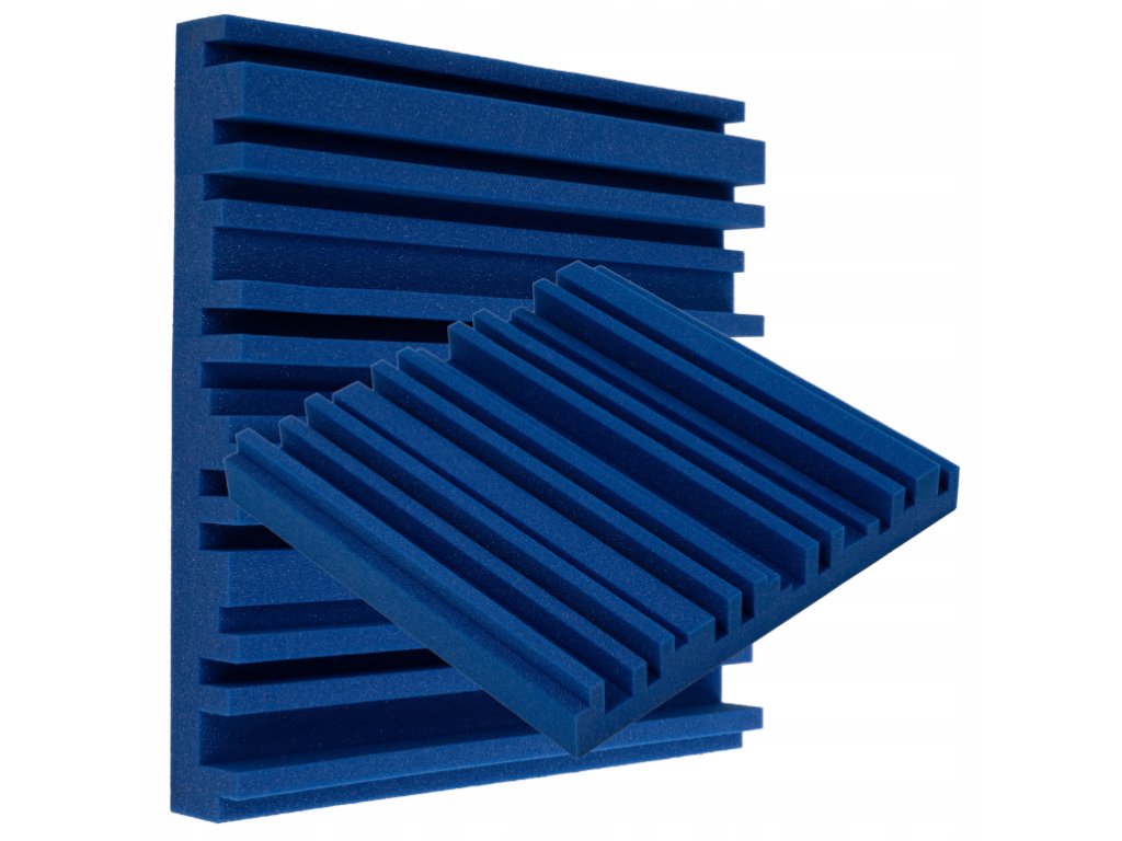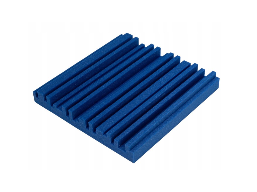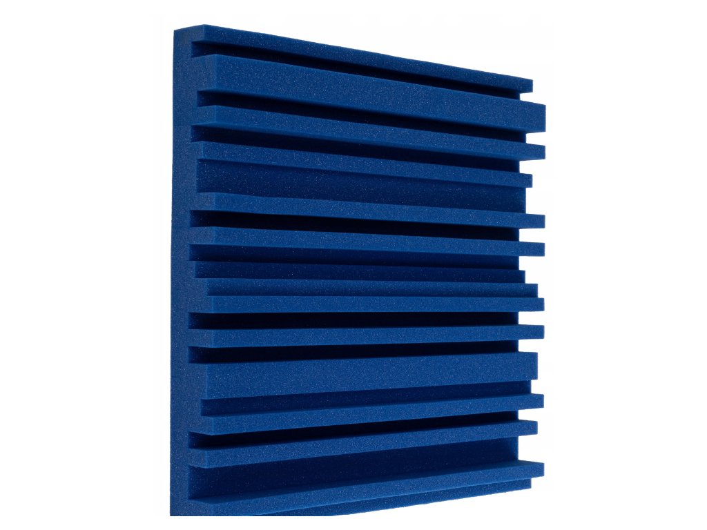 Akustický panel Equalizer 50×50×7 cm, modrý; znižuje echo a dozvuk, jednoduchá montáž, stabilná PU pena.