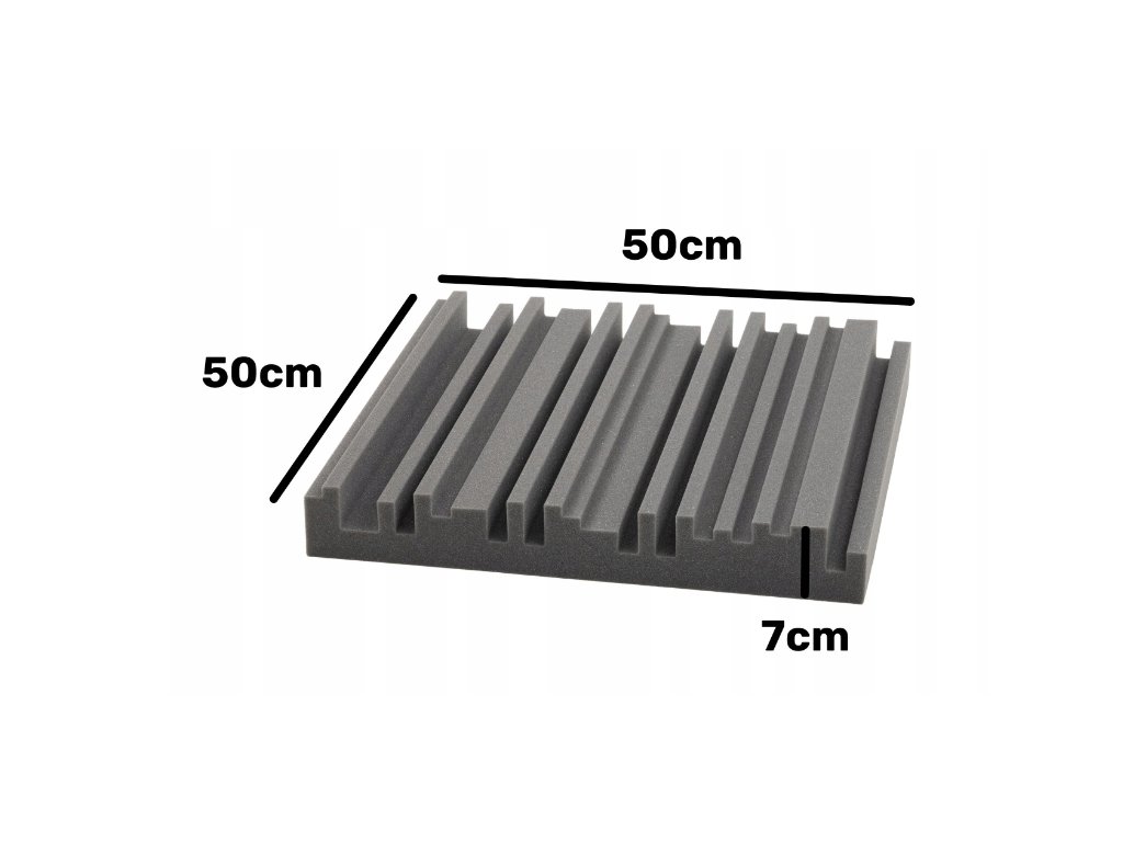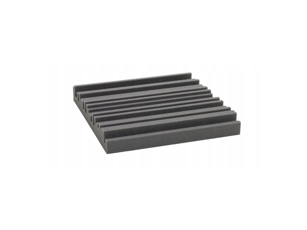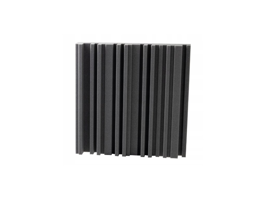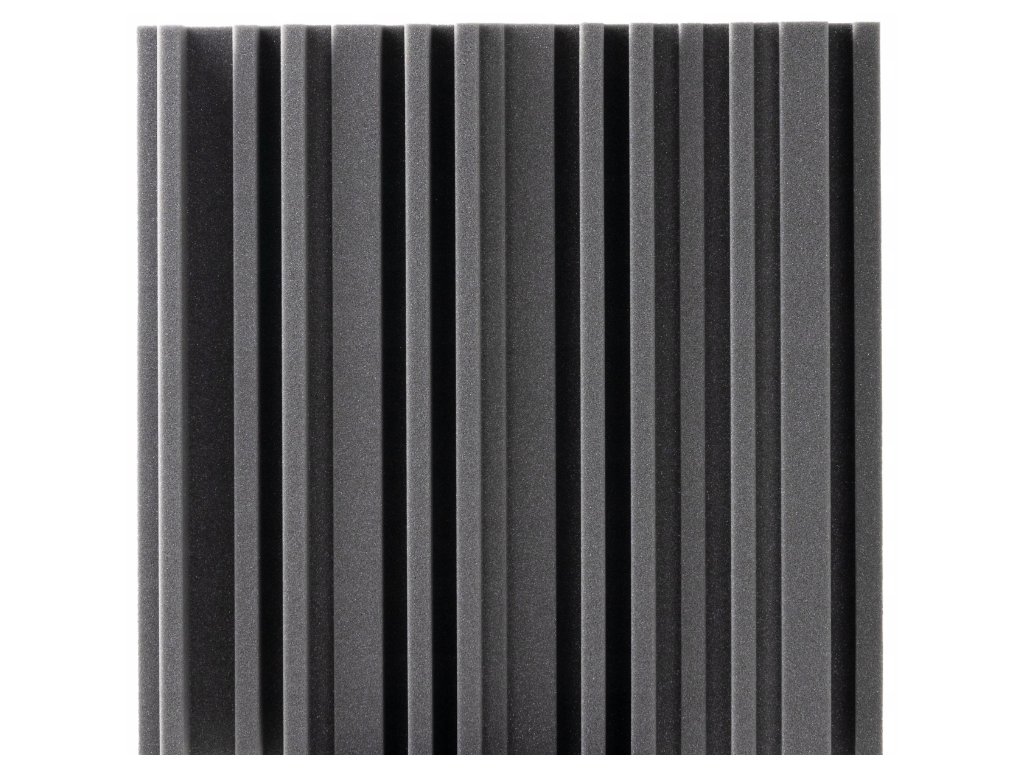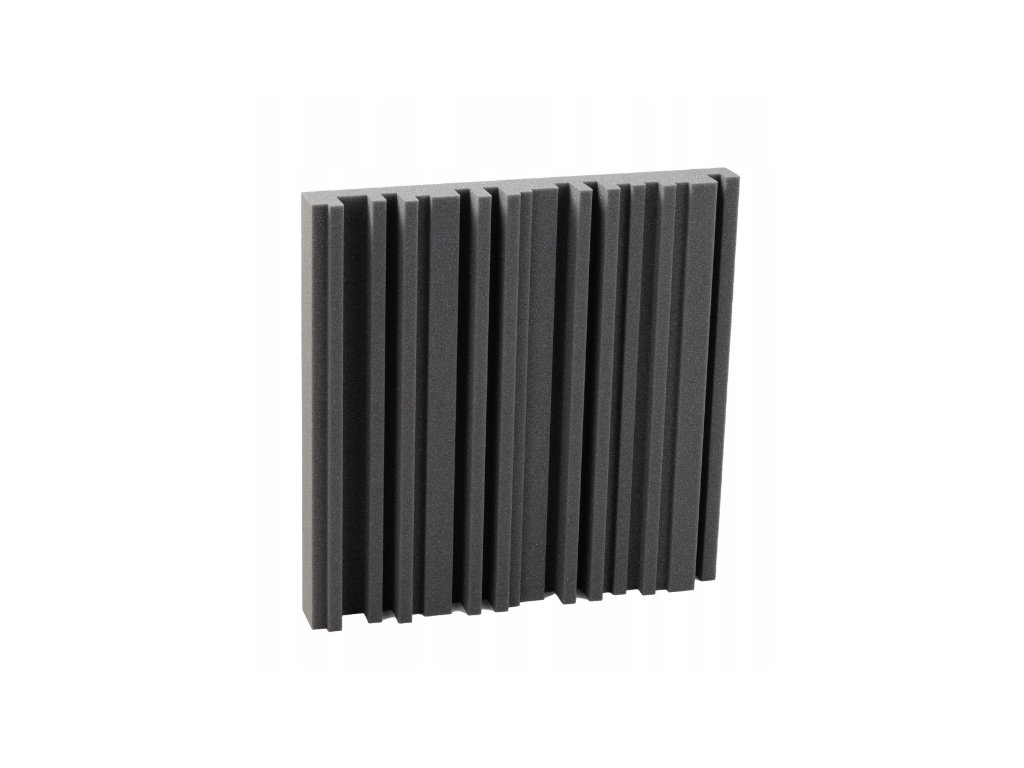 Akustický panel Equalizer 50×50×7 cm, tmavo sivý; znižuje echo a dozvuk, jednoduchá montáž, stabilná PU pena.