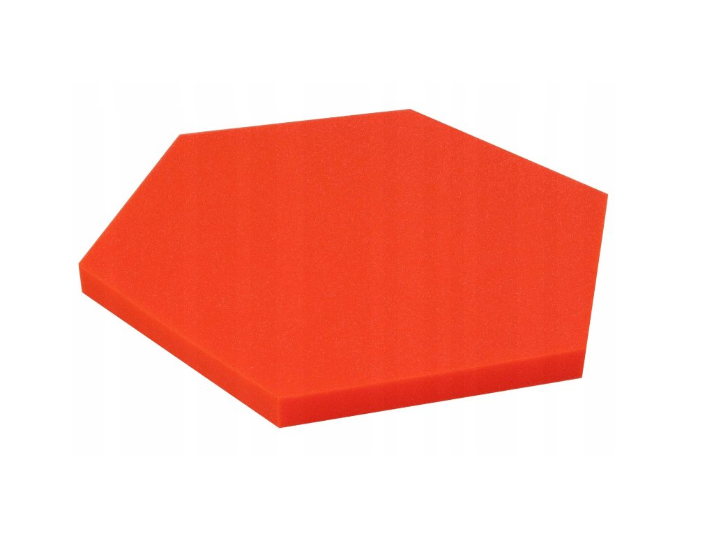 Dekoračný akustický panel hexagon 50×50 cm, 3 cm. PU pena Bitmat AF-25, znižuje echo, jednoduchá montáž. Červený.