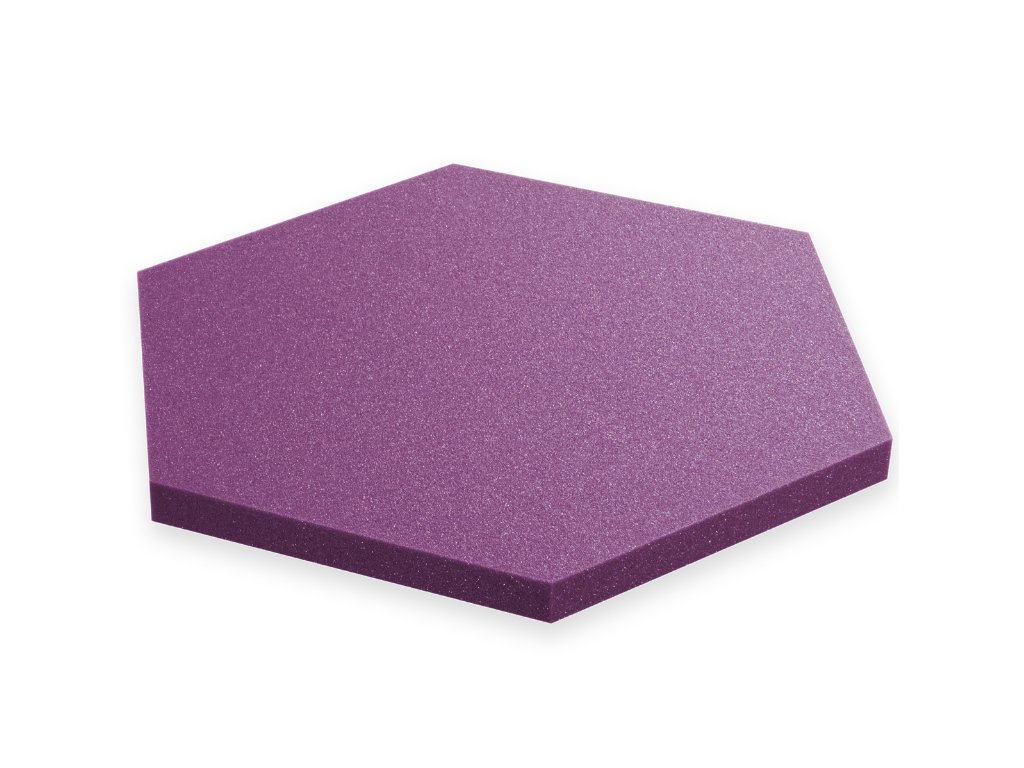 Dekoračný akustický panel hexagon 50×50 cm, 3 cm. PU pena Bitmat AF-25, znižuje echo, jednoduchá montáž. Fialový.