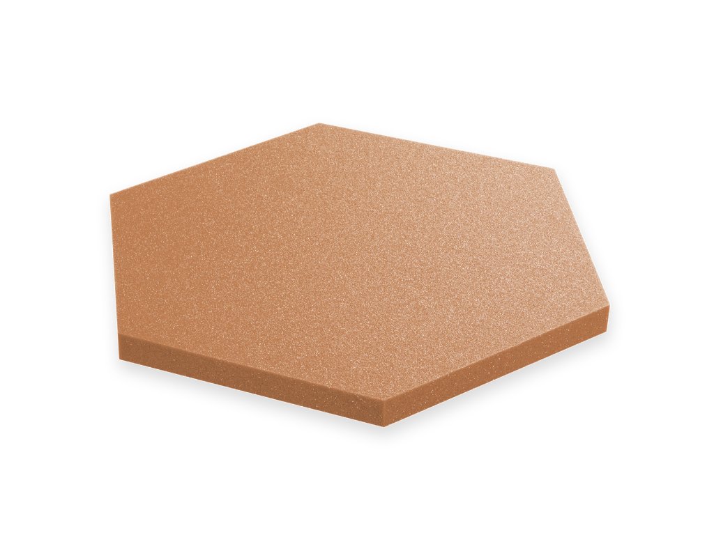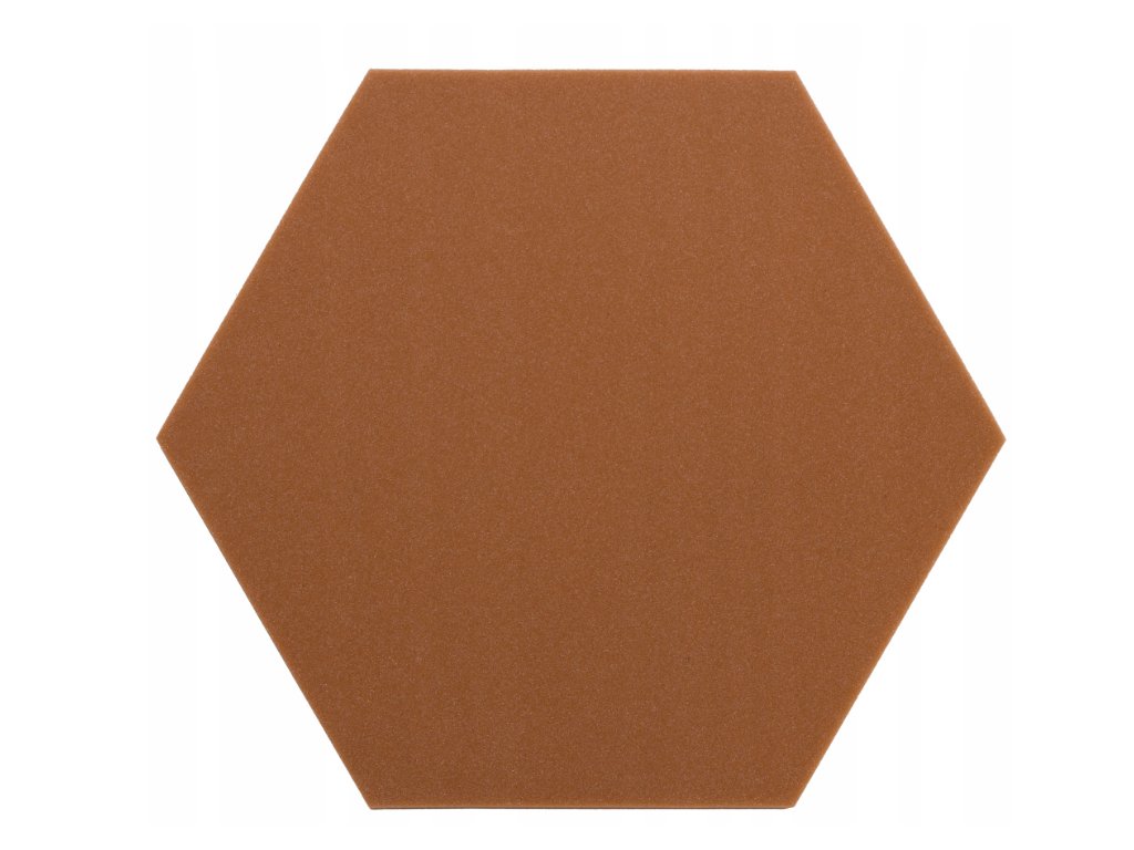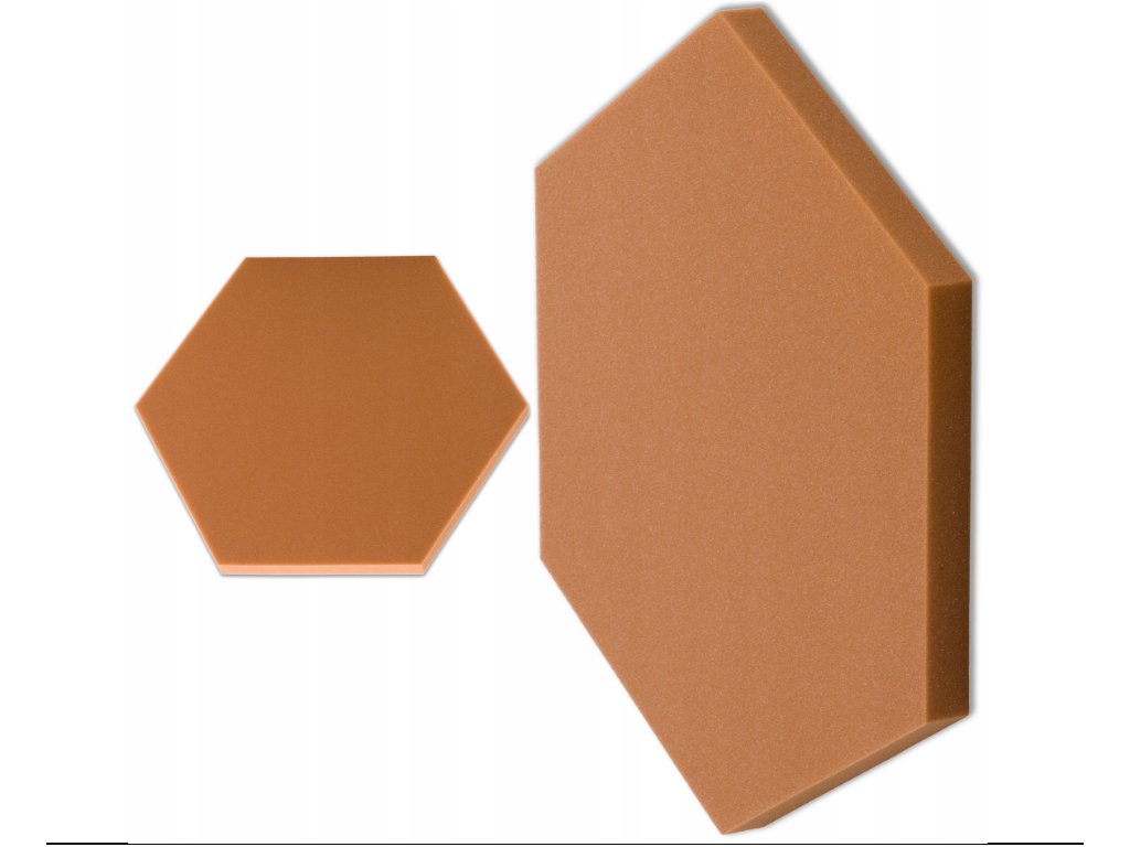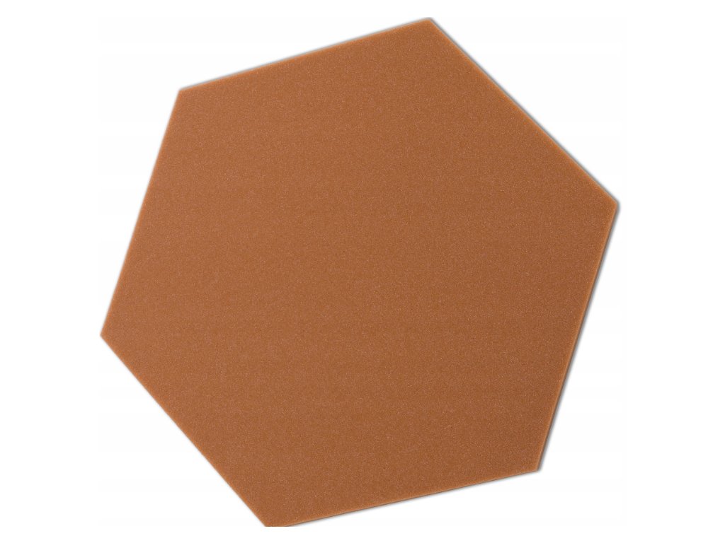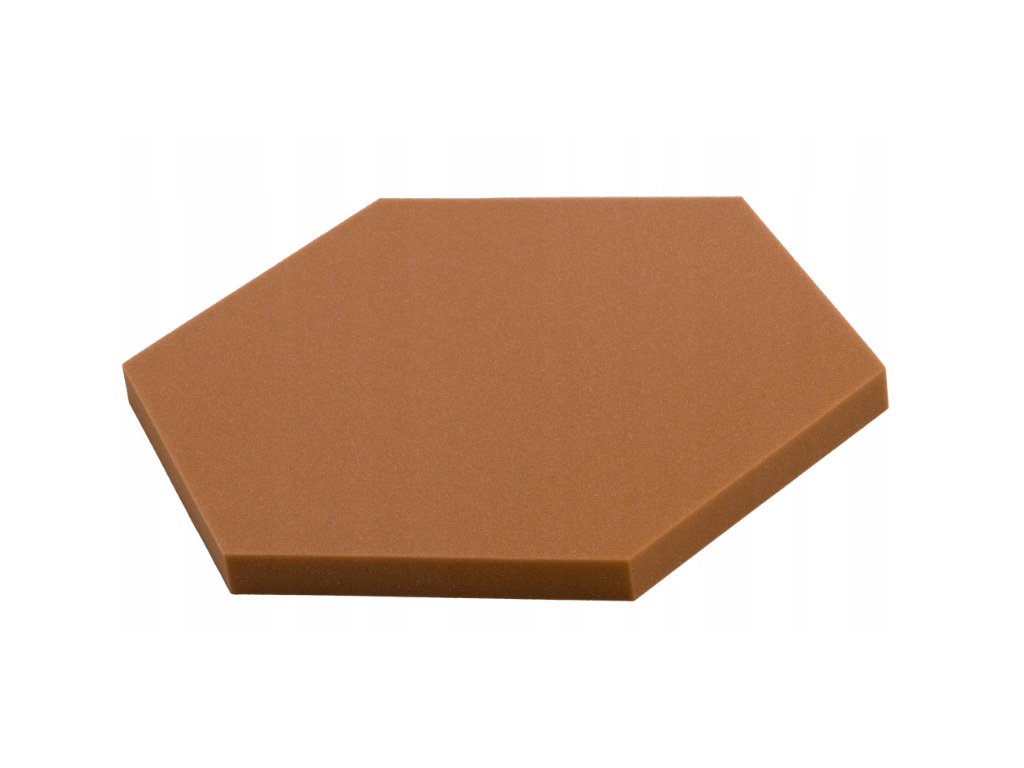 Dekoračný akustický panel hexagon 50×50 cm, 3 cm. PU pena Bitmat AF-25, znižuje echo, jednoduchá montáž. Hnedý.