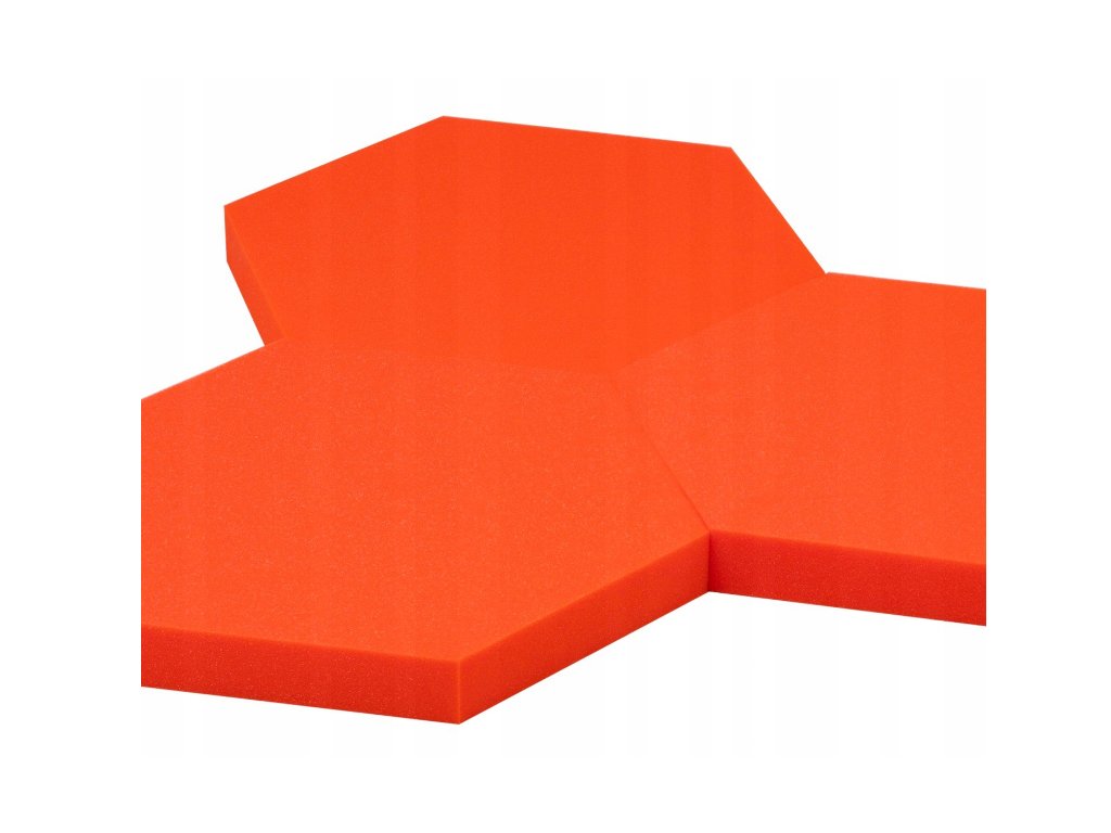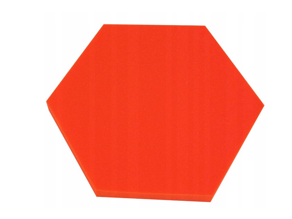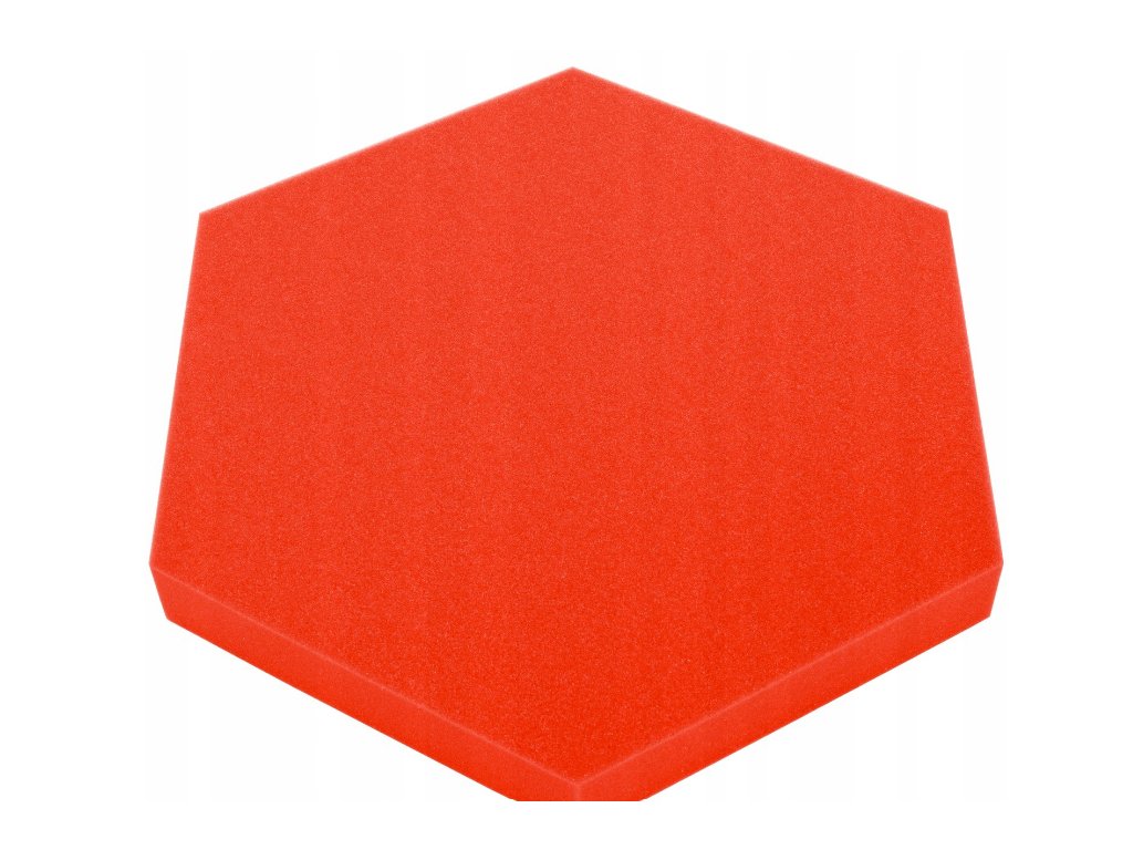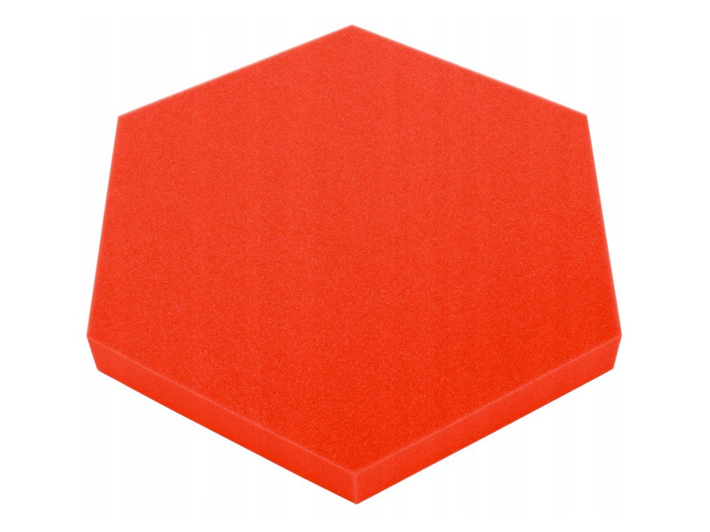 Dekoračný akustický panel hexagon 50×50 cm, hrúbka 5 cm. PU pena, redukuje echo a dozvuk. Jednoduchá montáž. Farba: červená.