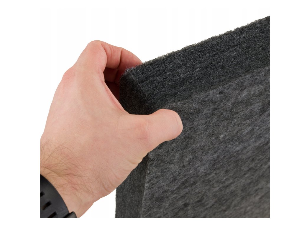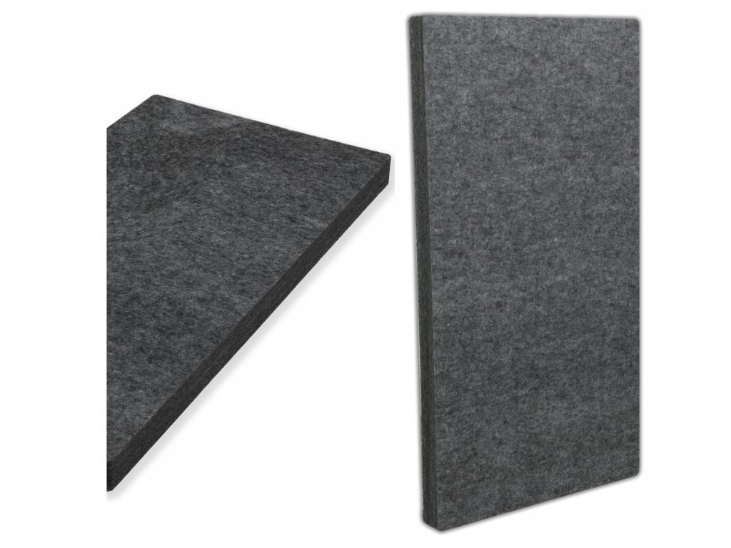 Polyesterový akustický panel 50×100×5 cm. Redukuje echo a dozvuk, vodoodolný, ľahko čistiteľný. Farba: šedá.