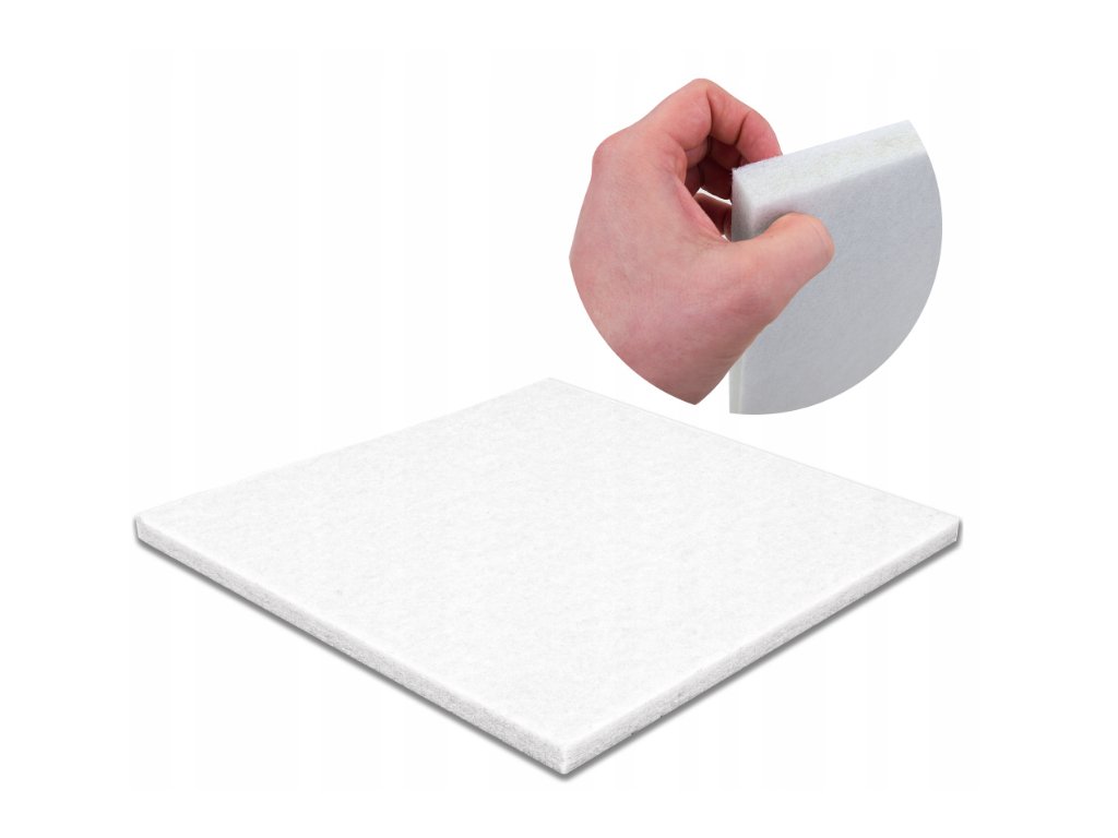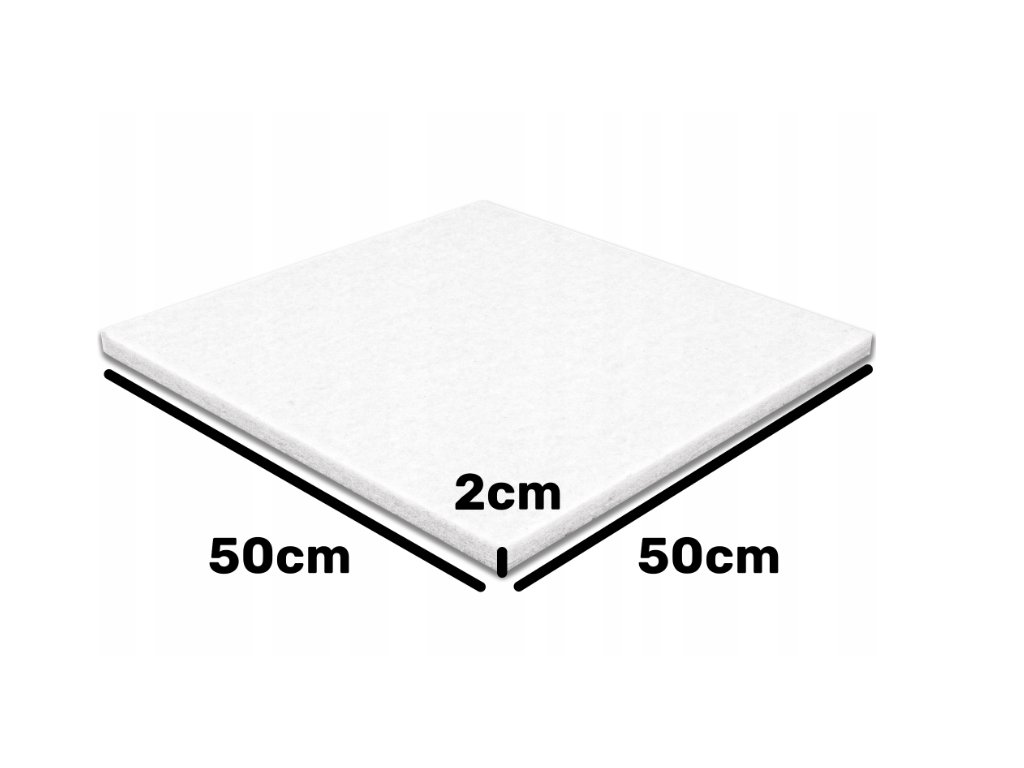 Polyesterový akustický panel 50×50×2 cm. Redukuje echo, pružný, vodoodolný, nekrúši sa. Farba: biela.