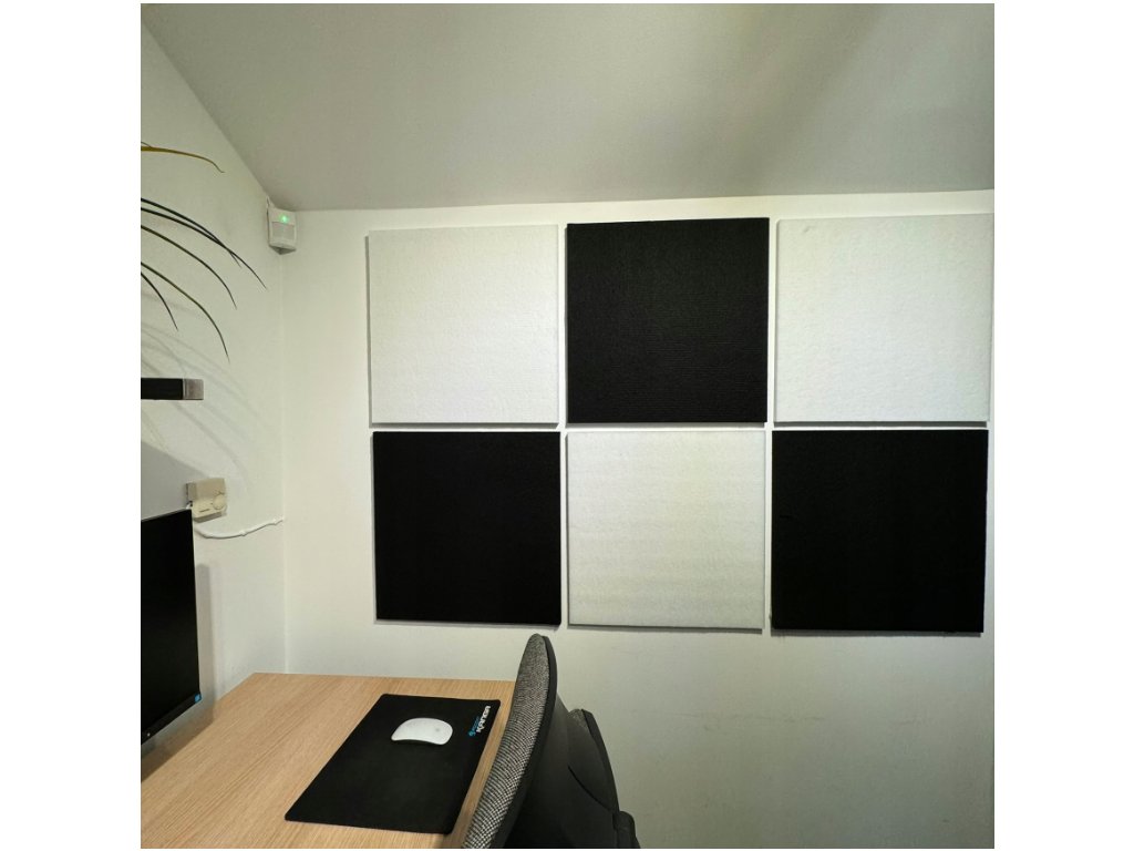 Polyesterový akustický panel 50×50×2 cm. Redukuje echo, pružný, vodoodolný, nekrúši sa. Farba: čierna.