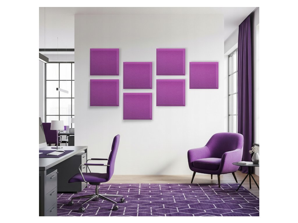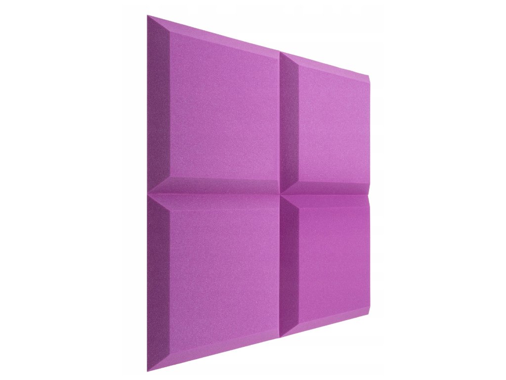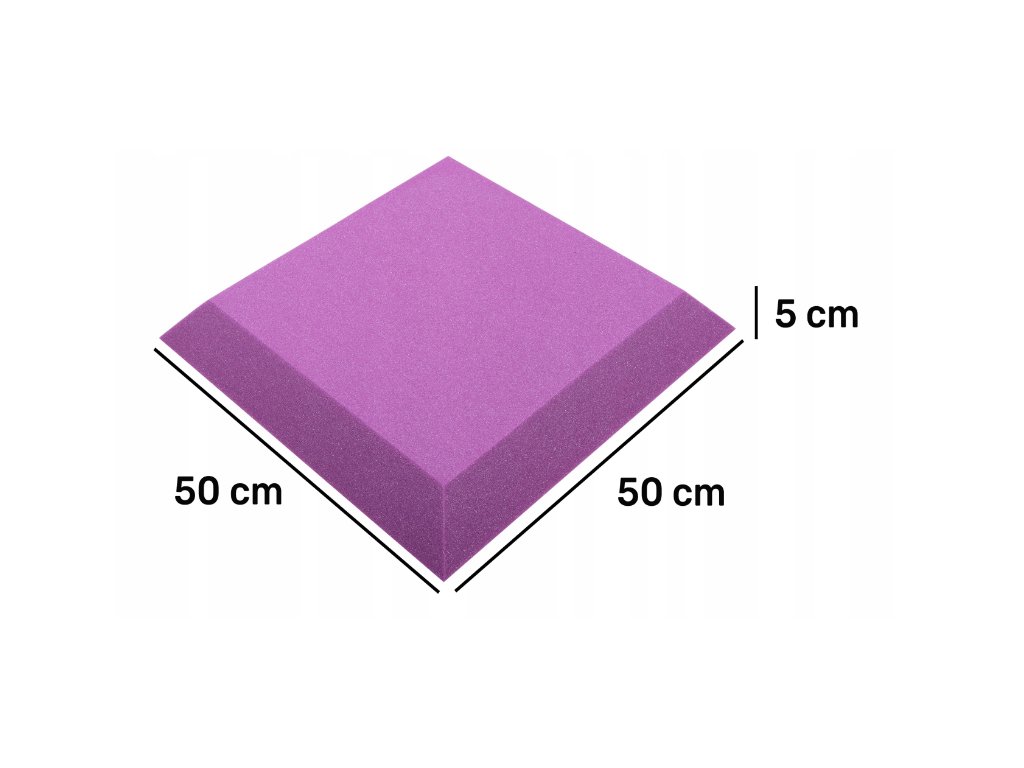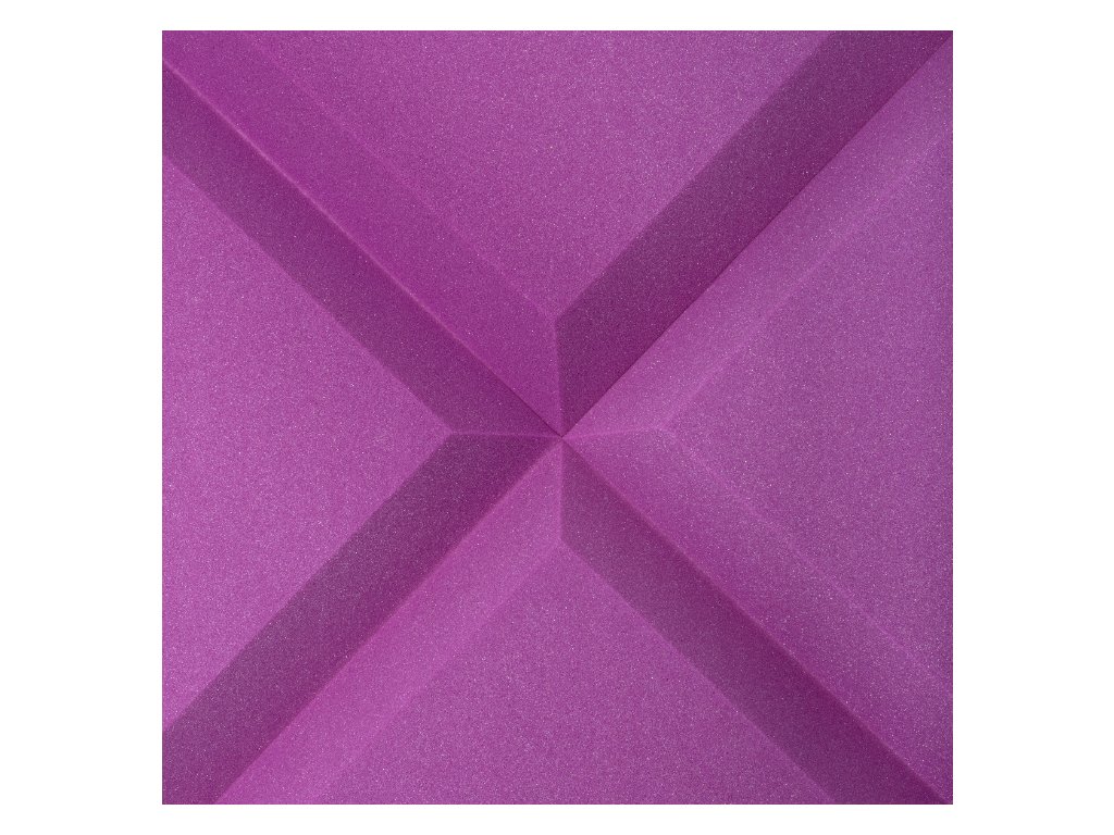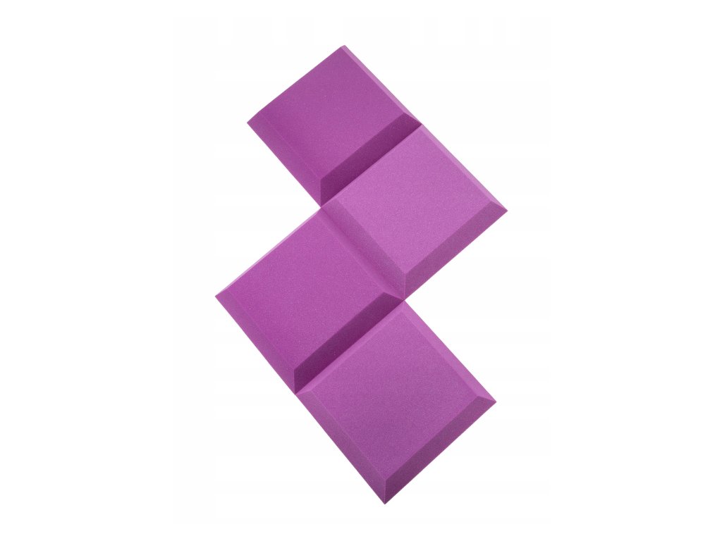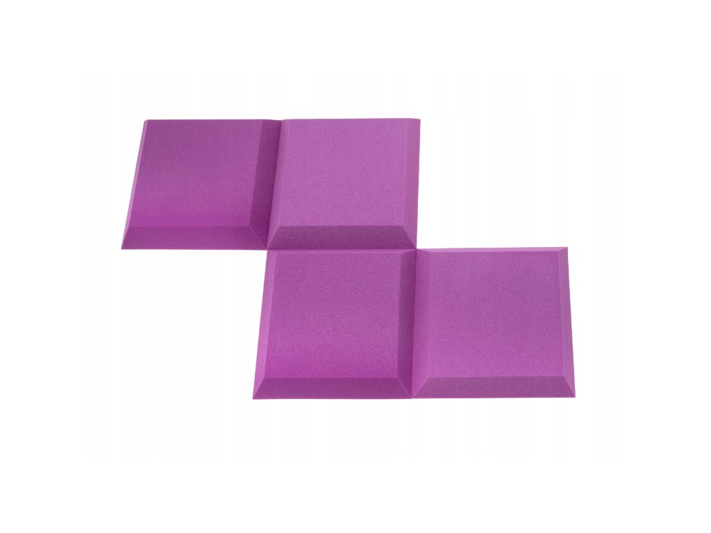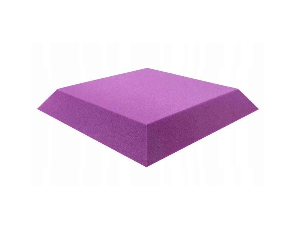 PU akustická pena Bitmat AF-25, trapéz 50×50×5 cm. Znižuje echo a dozvuk, montáž lepidlom/páskou. Farba: fialová.