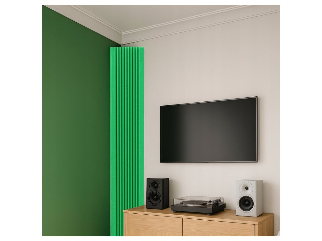 Basová akustická pasca 100 × 28 cm je určená na montáž do rohov miestnosti – presne tam, kde sa najviac hromadí energia nízkych frekvencií. Pomáha znížiť dunenie basov, spresniť posluch a zlepšiť zrozumiteľnosť reči aj spevu v domácom štúdiu, herni či domácom kine.