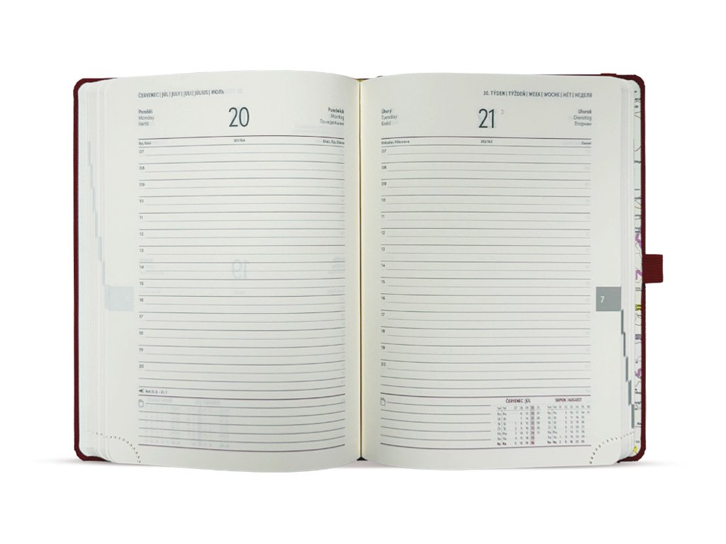 Denný diár je ideálnym pomocníkom pre tých, ktorí potrebujú detailné plánovanie. Každý deň má svoju vlastnú stránku, ktorá ponúka dostatok priestoru na zapisovanie denných úloh, stretnutí a poznámok. Prehľadný časový rozpis umožňuje jednoduchú organizáciu vášho času od rána až do večera. Diár je doplnený o praktické detaily, ako sú sviatky, priestor na dodatkové poznámky či kalendár. Elegantný dizajn a kvalitné prevedenie ho robia vhodným nielen na osobné, ale aj pracovné využitie.