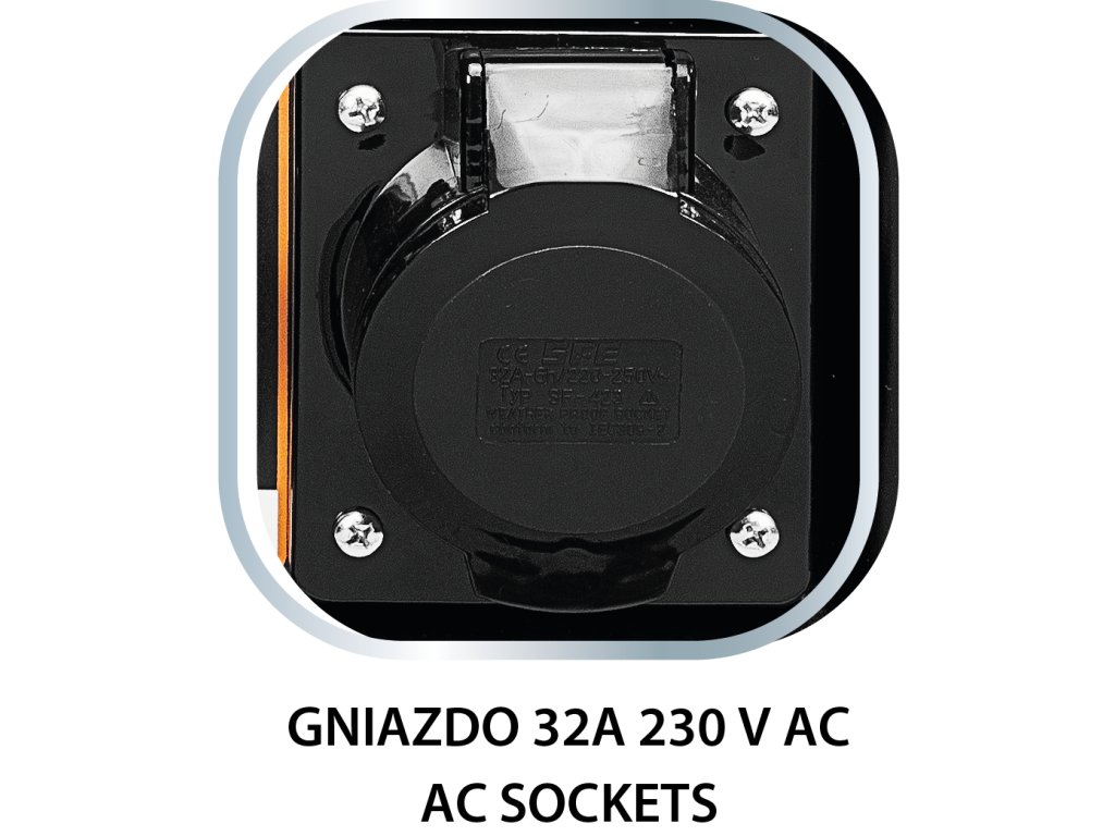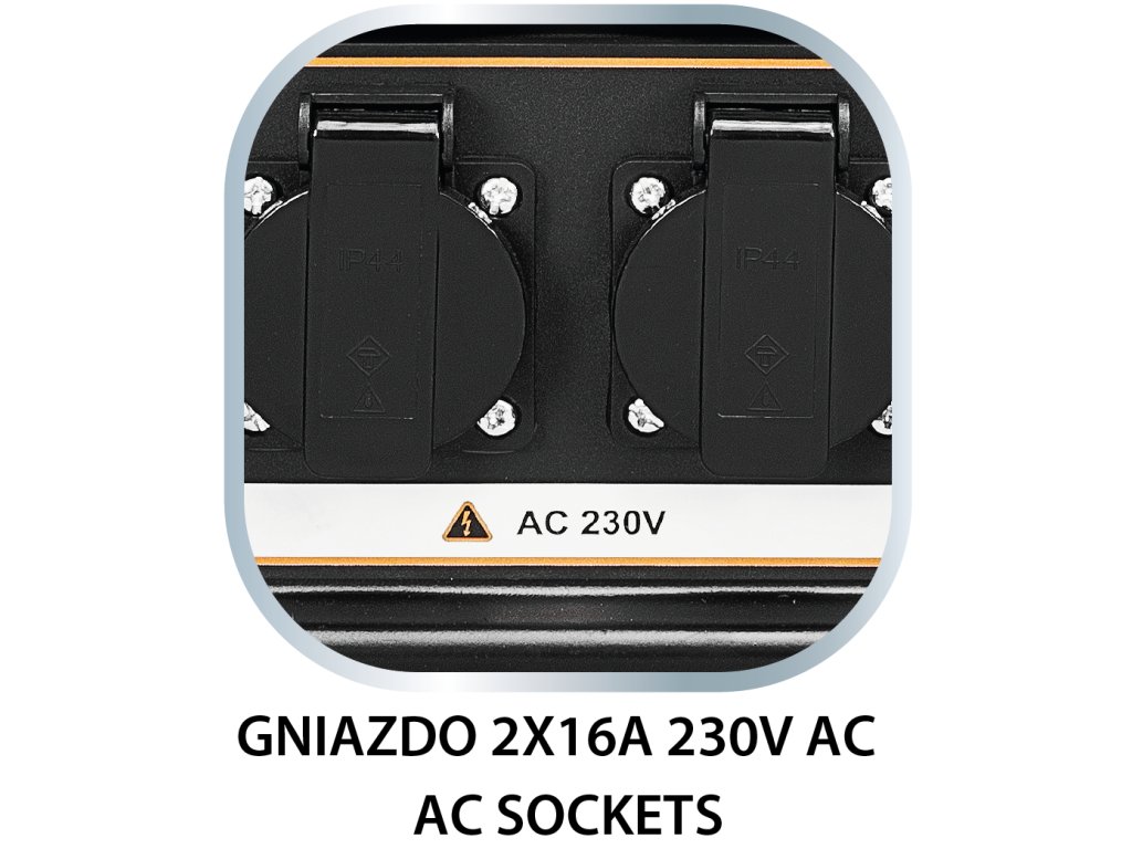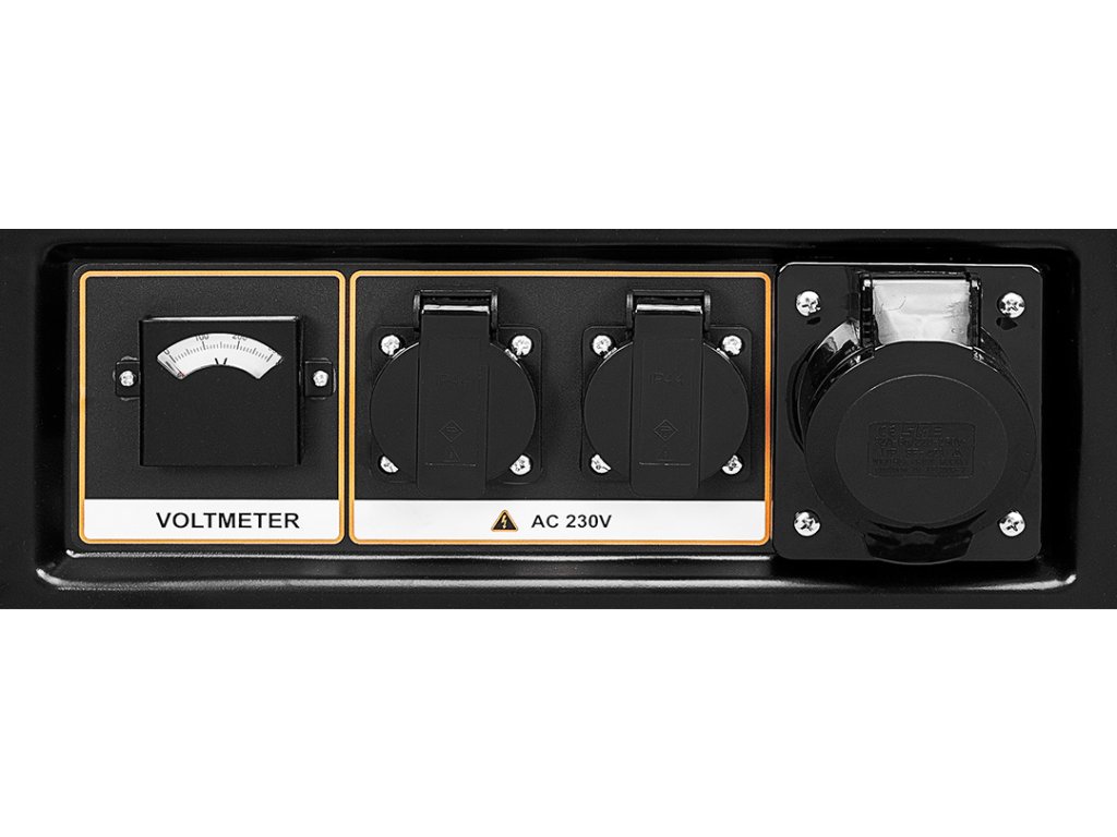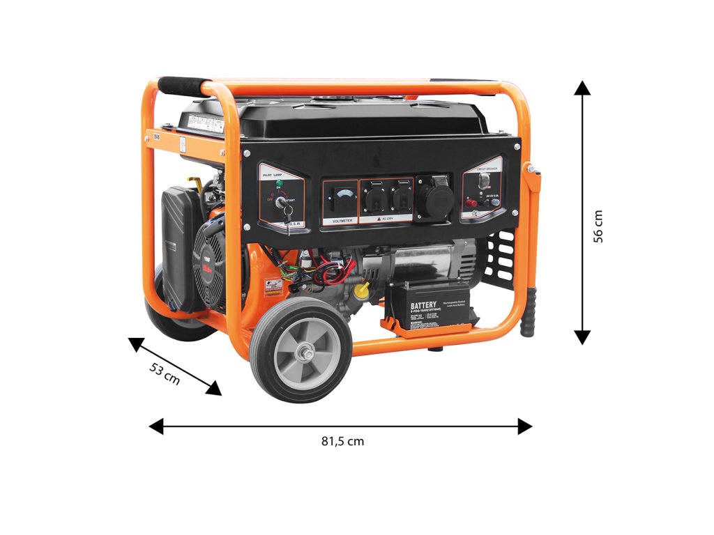 Vysoko výkonný generátor určený na napájanie rôznych typov elektrických zariadení v oblastiach bez prístupu k elektrickej sieti. Výkon: 6000W/6500W, zásuvka 1x12V + 2x230V(16A) + 1x230V(32A), benzínový motor 11 kW/15 k, nádrž 25 l, min. spotreba paliva 0,313 g/kW.h priemerná spotreba paliva 4,89 l/h' rozmery (DxŠxV) 815x530x 560, olej SAE15W-30, olejová nádrž1,1l, palivo 92,95,98, LwA = 97dB, hmotnosť 87 kg, 15HP, EURO V, AVR, IP 23M, 25A, zapaľovacia sviečka typ F6RTC, otáčky 3000 ot/min, objem 420 CC