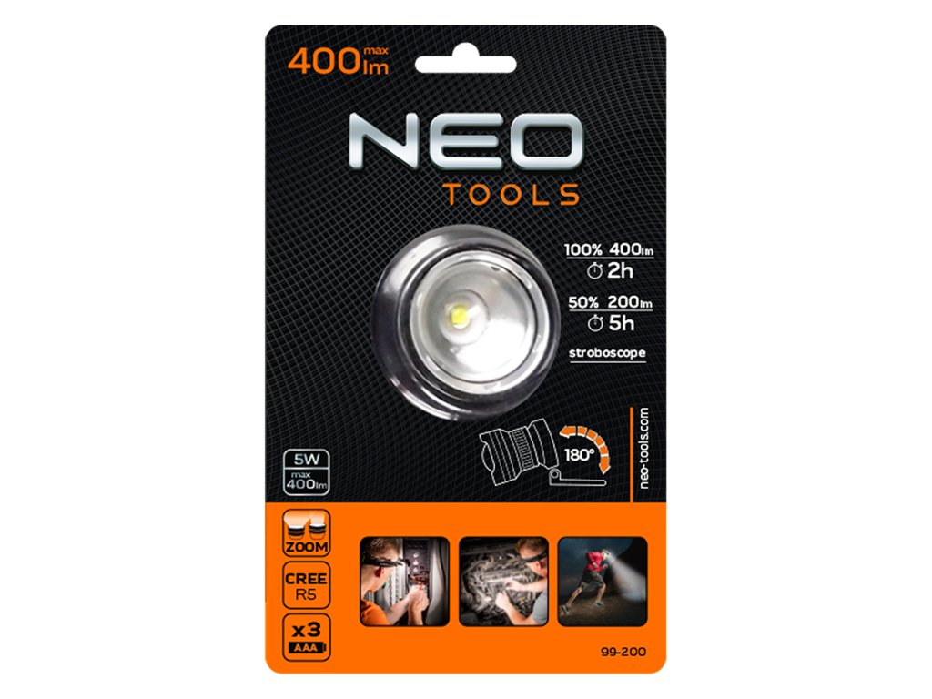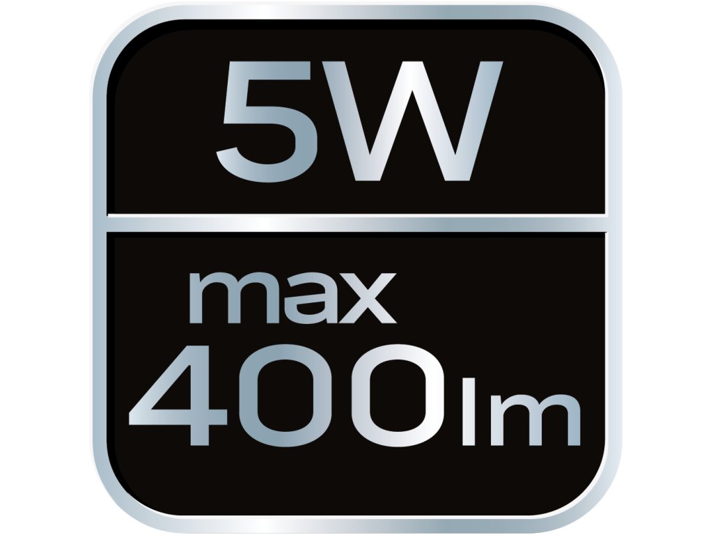 Baterka je vybavená extra výkonnou 5W CREE RS LED so svietivosťou 400 lúmenov. Telo baterky je vyrobené z hliníka, ktorý efektívne odvádza teplo. Čelovka vybavená až 3 funkciami svietenia (100%, 50% a stroboskop) a špeciálnou funkciou ZOOM, ktorá umožňuje meniť ohnisko svietenia a upravovať dosah svetla. Navyše je možná aj zmena uhla svietenia. Svetlo je napájané tromi AAA batériami, ktoré sú umiestnené na zadnej strane čelovky pre lepšie vyváženie. Pracovný čas svietenia je do 5 hodín v závislosti od použitých batérií a funkcie.