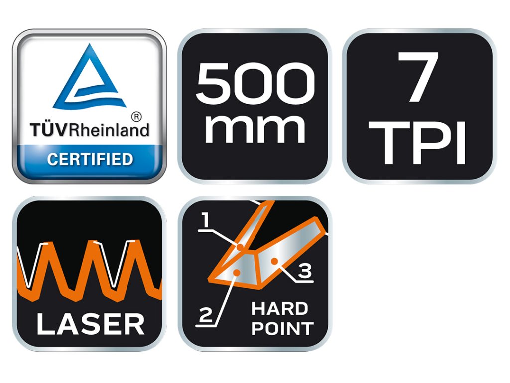 Plochá píla 500 mm, 7 TPI, dvojitá materiálová rukoväť, zuby naostrené a kalené z troch strán
