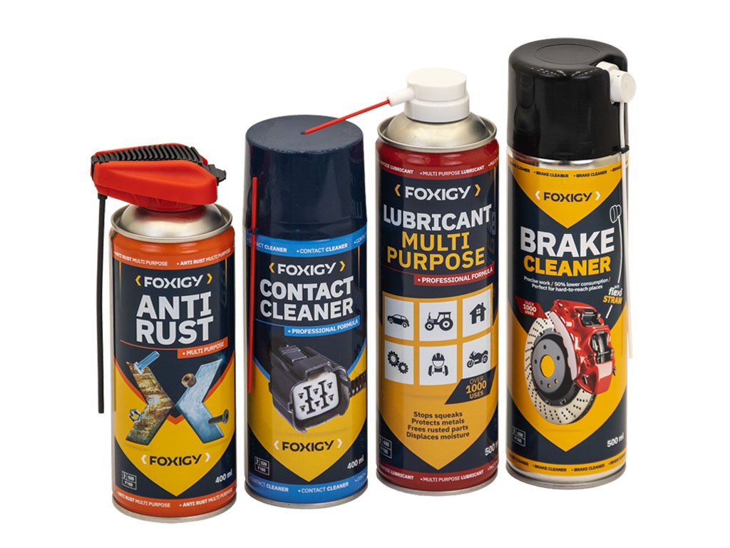 Darčeková sada Majster plná Foxigy sprejov. Univerzálne mazivo, čistič bŕzd, kontakt sprej a odhrdzovač v darčekovom balení sú produkty, ktoré určite potešia každého kutila alebo mechanika.