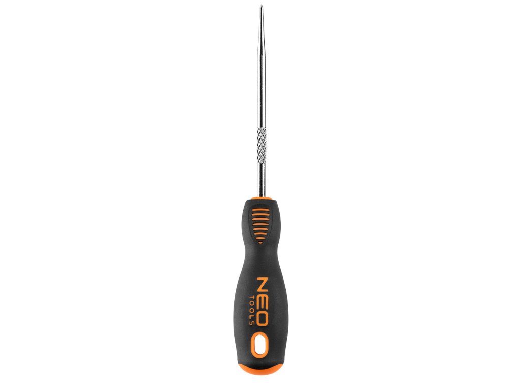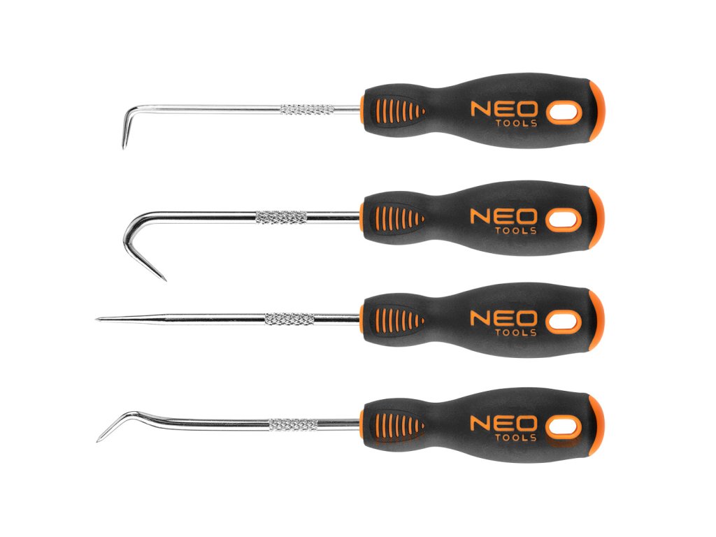 Háčiky 150 mm, sada 4 ks. 04-231 od spoločnosti NEO je sada štyroch 150 mm dlhých nástrojov na odstraňovanie tesnení. Majú pohodlnú rukoväť skrutkovača, ktorá má trojuholníkový ergonomický tvar. Okrem toho je tu tvarovaná opierka na palec, ktorá znižuje namáhanie ruky počas vykonávania úloh a umožňuje voľnosť pri práci. Čepeľ je vyrobená z uhlíkovej ocele a rukoväť je potiahnutá plastom TPR - odolným voči chemikáliám, tukom a minerálnym olejom. Sada hákov značky NEO je určená pre mechanikov, staviteľov a domácich majstrov.