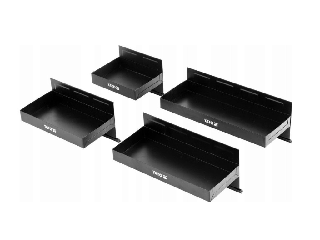 Súprava 4 políc z odolného oceľového plechu je ideálna na uloženie drobného náradia a príslušenstva v každej dielni.