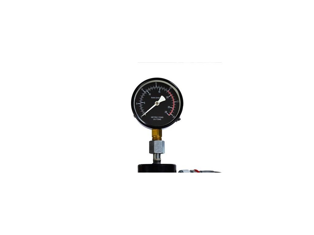 Tlak 20 ton je možné sledovať a regulovať pomocou manometra umiestneného vo vrchnej časti lisu.
