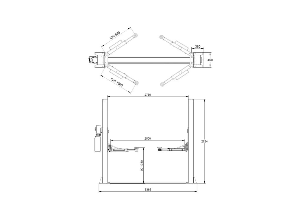 Celkové rozmery dvojstĺpového zdviháku: | 3385x2830mm |