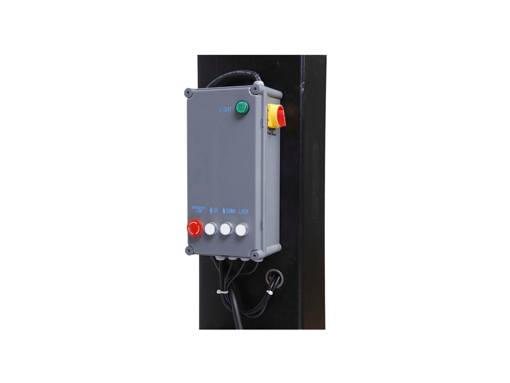 Ovládací panel pozostáva len z troch tlačidiel: zdvíhanie, spúšťanie do zámkov, spúšťanie na zem.