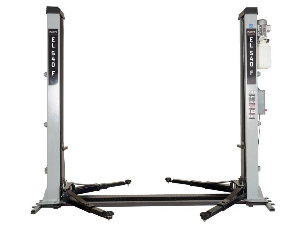 Elektrohydraulický dvojstĺpový zdvihák EL S40 F 4T 400V, s nosnosťou 4 tony vhodný pre zdvíhanie osobných automobilov, SUV a menších dodávok. Vďaka zosilnenému rámu je vhodný aj na inštaláciu na slabšie podlahy.