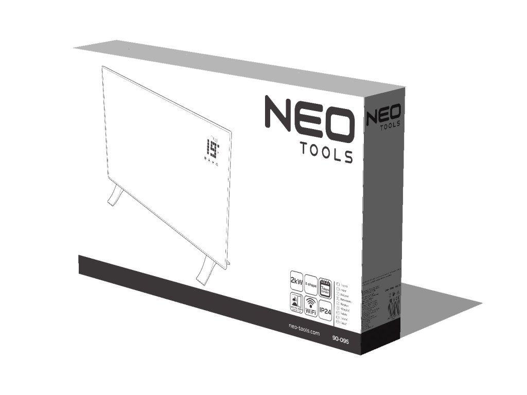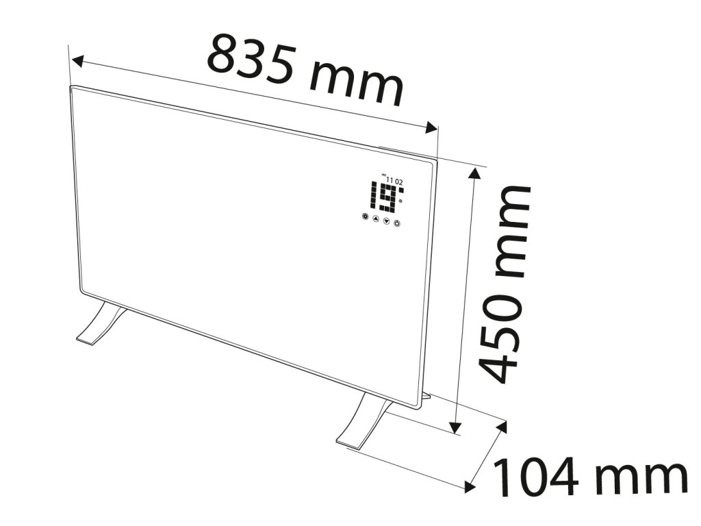 Elektrický konvektor s výkonom 2000 W (ref. 90-095) sa vyznačuje moderným a elegantným dizajnom. Je vyrobený z tvrdeného skla s vysokou pevnosťou. Hliníkový vykurovací systém novej generácie pracuje bez hluku, zápachu, plynu alebo dymu. Teplo pocítite okamžite po zapnutí konvektora. Ovládanie pomocou dotykového LED displeja je jednoduché a intuitívne. Prístroj je vybavený termostatom s reguláciou teploty od 5 do 45 °C. Diaľkové ovládanie uľahčuje programovanie prevádzkového režimu. Denný program (24 hodín) na jednotke možno ovládať pomocou diaľkového ovládania aj dotykového panela. Ohrievač je vybavený ochranou proti prehriatiu, prevrhnutiu a detskou ochranou, čo prispieva k bezpečnému používaniu. Výrobok má funkciu proti zamrznutiu na udržiavanie minimálnej teploty v miestnosti a funkciu detekcie otvoreného okna. Ohrievač možno umiestniť na podlahu alebo namontovať na stenu. Výrobok spolupracuje s aplikáciou TUYA APP, ktorá umožňuje týždenné programovanie zariadenia. Presné plánovanie teplôt sa premieta do úsporného využívania energie. Dotykový panel ponúka možnosť 24-hodinového programovania. Tento výrobok je vhodný len na príležitostné použitie alebo na použitie v dobre izolovaných miestnostiach.