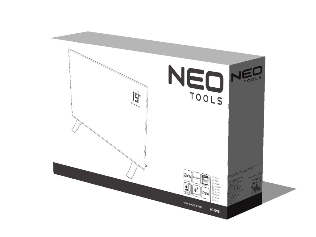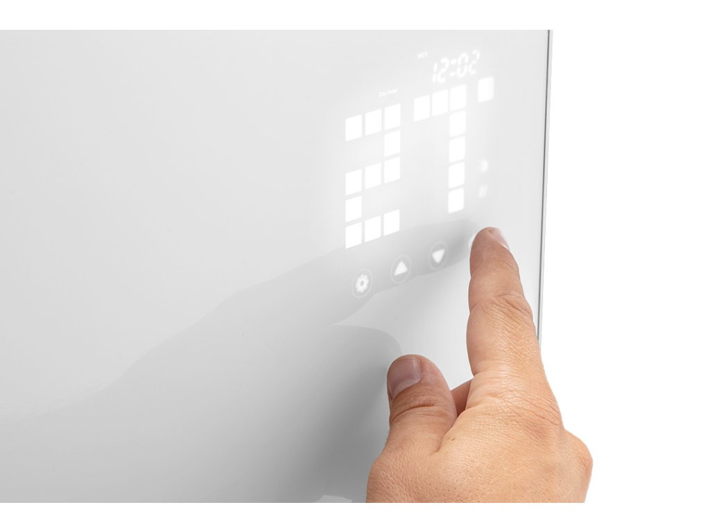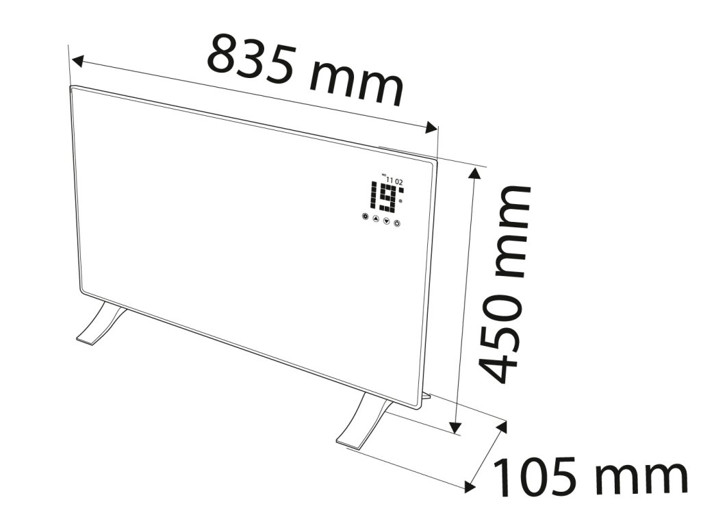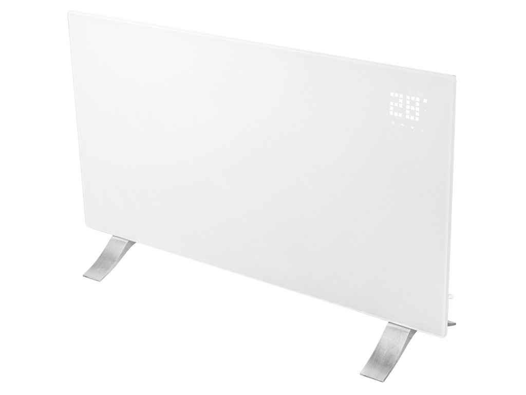 Elektrický konvektor s výkonom 2000 W sa vyznačuje moderným a elegantným dizajnom. Je vyrobený z tvrdeného skla s vysokou pevnosťou. Hliníkový vykurovací systém novej generácie pracuje bez hluku, zápachu, plynu alebo dymu. Teplo pocítite okamžite po zapnutí konvektora. Dotykový LED displej sa jednoducho a intuitívne ovláda. Prístroj je vybavený termostatom s reguláciou teploty od 5 do 45 °C. Diaľkové ovládanie umožňuje jednoduché naprogramovanie prevádzkového režimu. Týždenný program v jednotke možno ovládať pomocou diaľkového ovládania aj dotykového panela. Ohrievač je vybavený ochranou proti prehriatiu, prevrhnutiu a detskou ochranou, čo prispieva k bezpečnému používaniu. Výrobok má funkciu proti zamrznutiu na udržiavanie minimálnej teploty v miestnosti a funkciu detekcie otvoreného okna. Ohrievač možno umiestniť na podlahu alebo namontovať na stenu. Tento výrobok je vhodný len na príležitostné použitie alebo na použitie v dobre izolovaných miestnostiach.