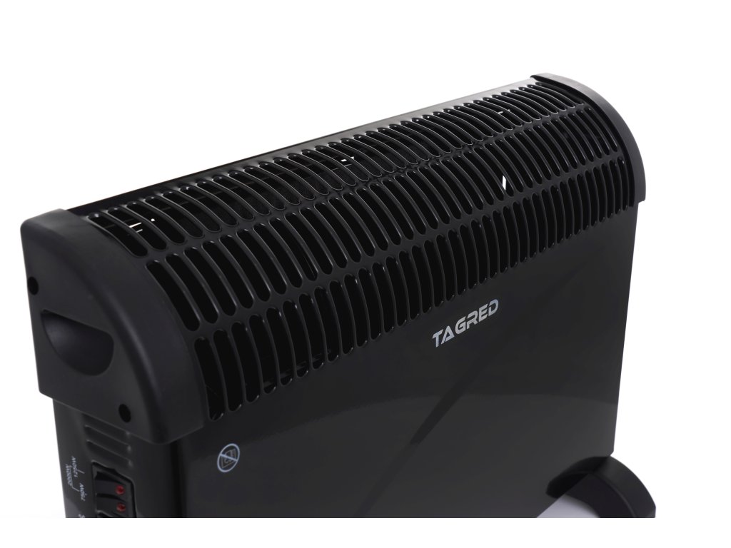 Konvekčný radiátor TAGRED s funkciou TURBO vám pomôže v chladných dňoch veľmi rýchlo zahriať kúpeľňu alebo detskú izbu. Teplý vzduch stúpajúci z radiátora rýchlo zvýši teplotu okolia. Zariadenie je vybavené termostatom, po dosiahnutí zvoleného výkonu sa radiátor automaticky vypne.