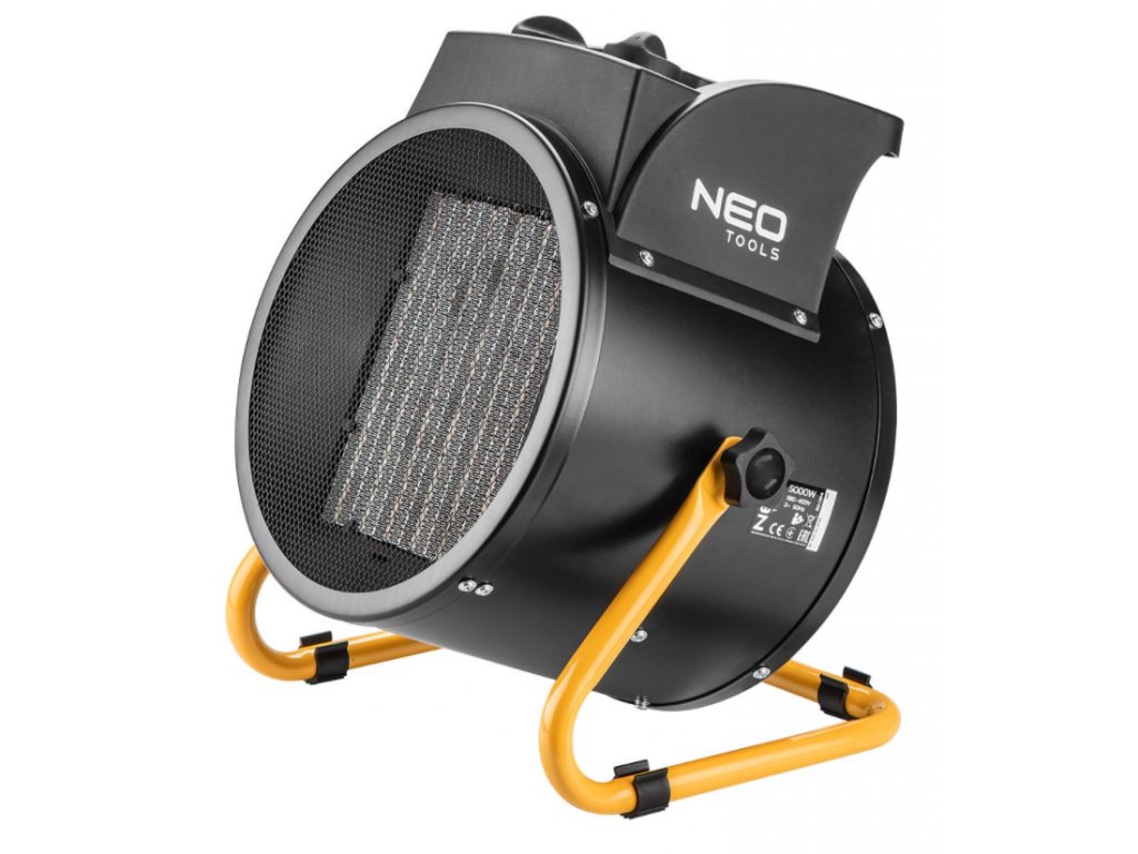 Elektrický ohrievač značky Neo s výkonom 5 kW. Je prenosný a vhodný na vykurovanie veľkých miestností ako sú dielne, garáže, domácnosti, obchody či haly. Keramické výhrevne teleso a silný prúd vzduchu, zaručujú rýchle ohriatie aj na veľkú vzdialenosť s nízkou hladinou hluku. Izolovaná plastová rukoväť umožňuje jednoduché prenášanie ohrievača. Práškový nástrek chráni kryt ohrievača pred hrdzou. Zariadenie je maximálne bezpečné nevytvára žiadne nepríjemné pachy, vlhkosť ani paru, zároveň je vybavené systémom, ktorý zabezpečí okamžité vypnutie pri prevrátení.