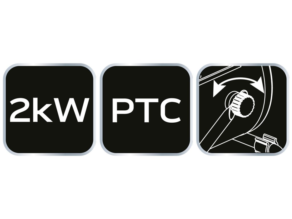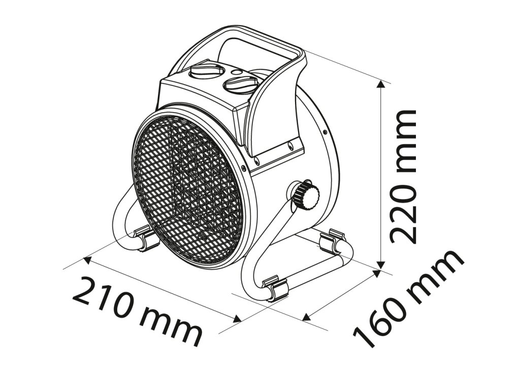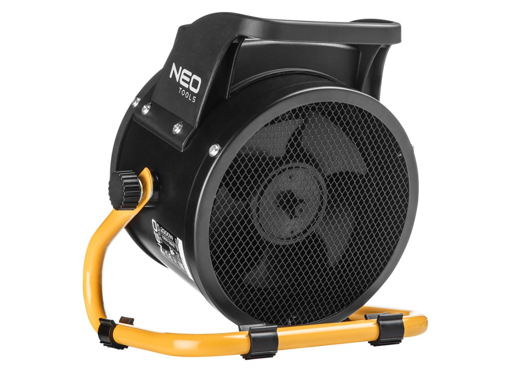 Elektrický ohrievač značky Neo s výkonom 2 kW. Je prenosný a vhodný na vykurovanie veľkých miestností ako sú dielne, garáže, domácnosti či obchody. Keramické výhrevne teleso a silný prúd vzduchu, zaručujú rýchle ohriatie aj na veľkú vzdialenosť s nízkou hladinou hluku. Izolovaná plastová rukoväť umožňuje jednoduché prenášanie ohrievača. Práškový nástrek chráni kryt ohrievača pred hrdzou. Zariadenie je maximálne bezpečné nevytvára žiadne nepríjemné pachy, vlhkosť ani paru, zároveň je vybavené systémom, ktorý zabezpečí okamžité vypnutie pri prevrátení.