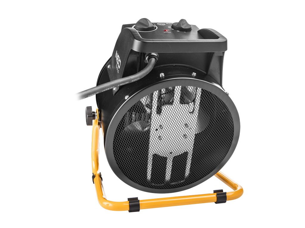 Elektrický ohrievač značky Neo s výkonom 5 kW. Je prenosný a vhodný na vykurovanie veľkých miestností ako sú dielne, garáže, domácnosti, obchody či haly. Keramické výhrevne teleso a silný prúd vzduchu, zaručujú rýchle ohriatie aj na veľkú vzdialenosť s nízkou hladinou hluku. Izolovaná plastová rukoväť umožňuje jednoduché prenášanie ohrievača. Práškový nástrek chráni kryt ohrievača pred hrdzou. Zariadenie je maximálne bezpečné nevytvára žiadne nepríjemné pachy, vlhkosť ani paru, zároveň je vybavené systémom, ktorý zabezpečí okamžité vypnutie pri prevrátení.