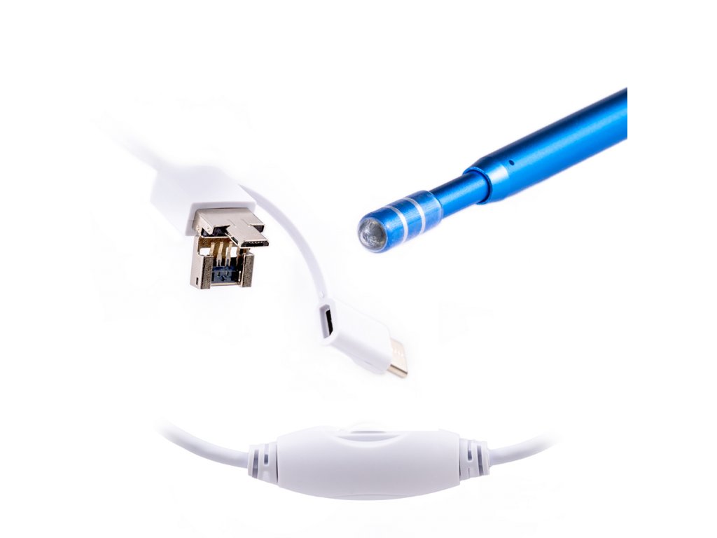 Inšpekčná kamera pre mobilné telefóny a počítače (endoskop), 0.3 Mpx, vodeodolná, vrátane LED svietenia, USB / micro USD / Type-C.