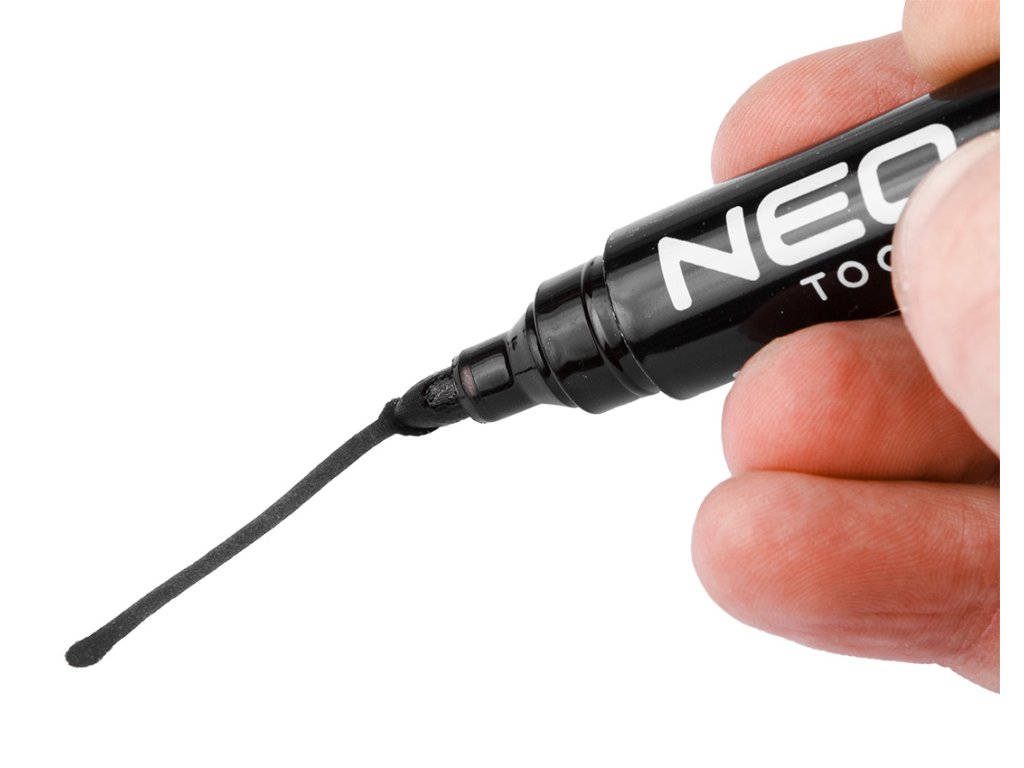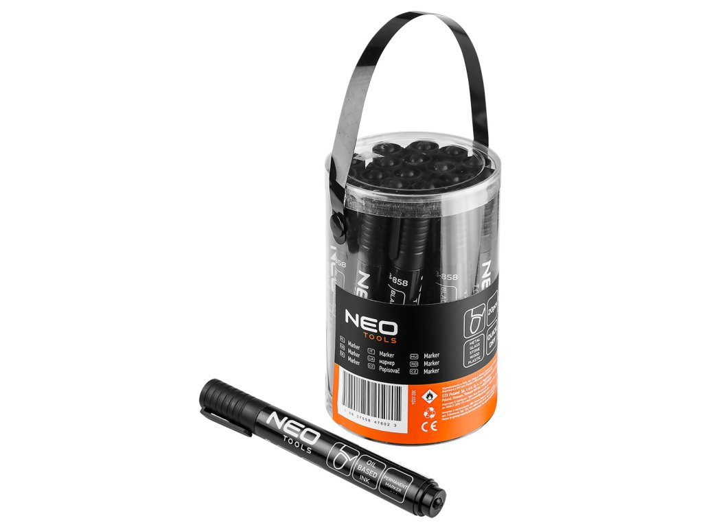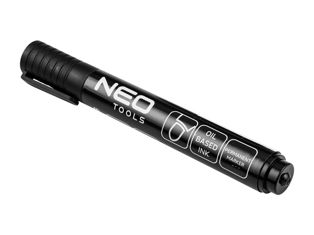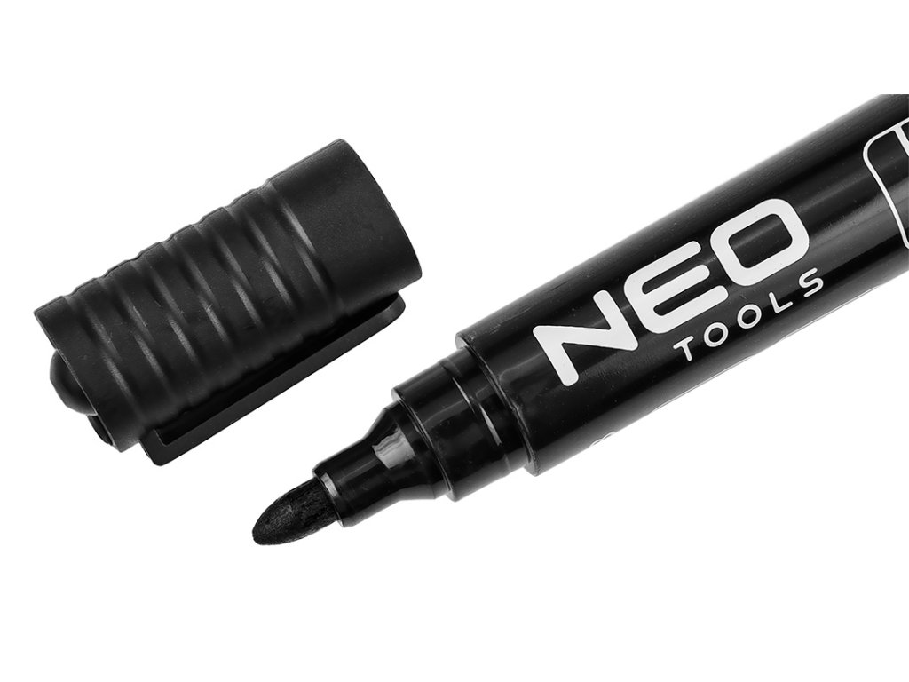 Stavebný popisovač, čierny, permanentný, vodeodolný, na olejovej báze, násobok 20 13-858 od NEO TOOLS je sada 20 stavebných popisovačov s okrúhlym hrotom 4,5 mm. Popisovač sa vyznačuje čiernym atramentom. Je na olejovej báze, permanentný, rýchloschnúci a vodeodolný. Skvele sa hodí na použitie na rôznych povrchoch vrátane kovu, skla, kameňa, dreva a plastu. Odporúča sa na profesionálne aj domáce použitie.
