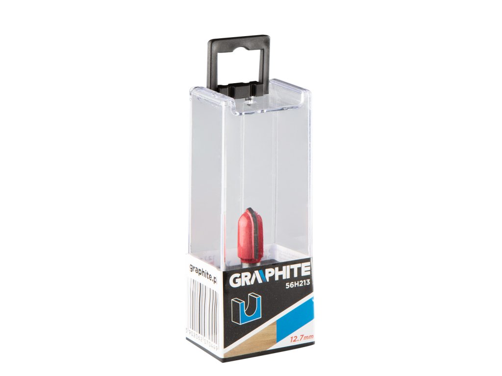 Dlhá drážkovacia fréza typu U, HM, 12,7 x 19,6 mm, stopka 8 mm GRAPHITE (ref. 56H213) určená na presné obrábanie napr. dreva, PVC, drevotriesky pomocou frézy. Hlava je vybavená reznými doštičkami zo spekaného karbidu. Rozmery pracovnej časti: priemer 12,7 mm, výška 19,6 mm; priemer drieku 8 mm.