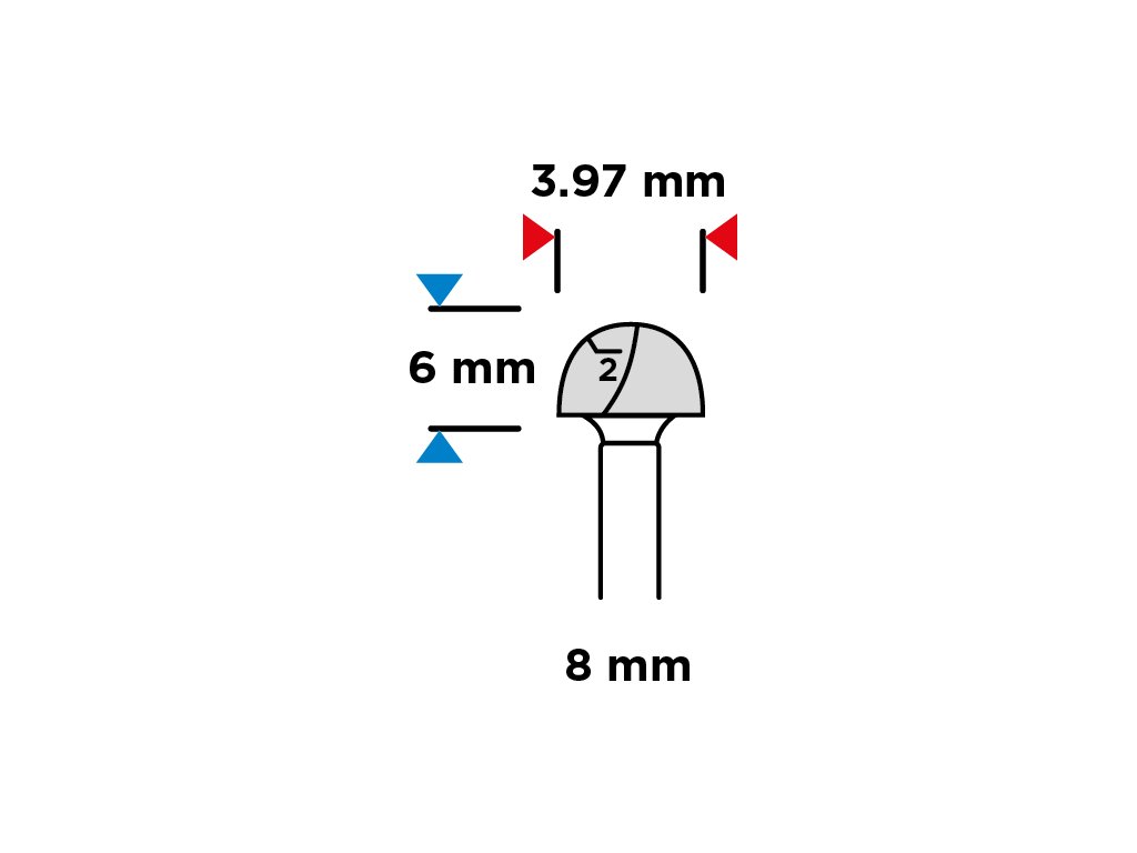 Fréza na drážky typ U, tvrdokovová doštička (HM), pracovný priemer frézy 3.97 mm, pracovná dĺžka 6 mm, priemer stopky 8 mm, na masívne drevo, MDF, drevotrieskové dosky, preglejku